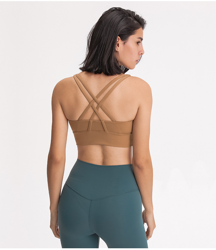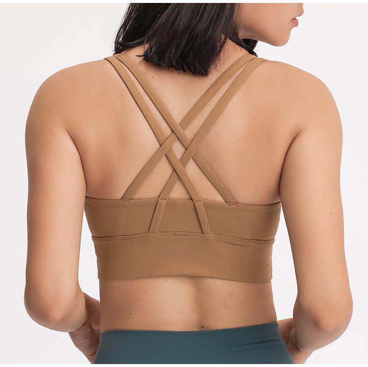cross beauty back yoga bra brushed nude high-strength shock-proof upper support sports underwear women