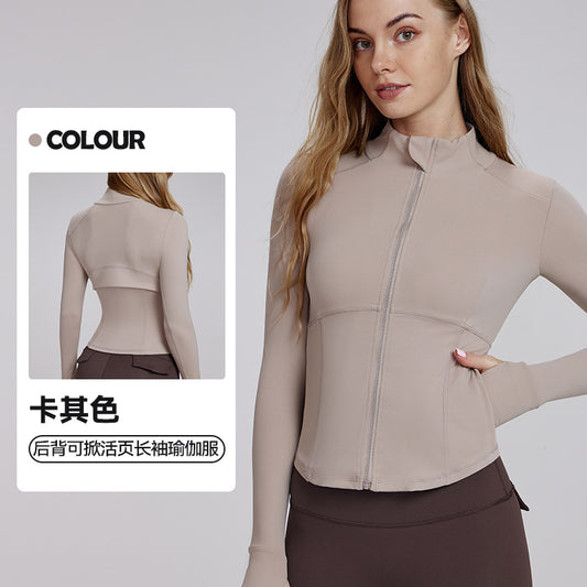 10/2023 Sports coat Women autumn winter nude slimming zipper yoga wear long sleeve outdoor running jump exercise fitness top