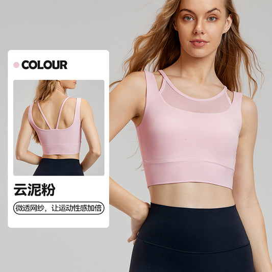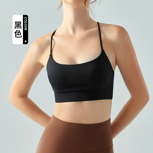 ribbed Sports BRA women's shockproof running gathered stereotyped yoga vest bra thin section beautiful back fitness clothing suspender top