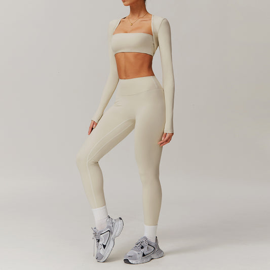 LINK-2 12/2024 Zippered sanded yoga suit for women, casual running and fitness, tight-fitting sports three-piece suit 9142