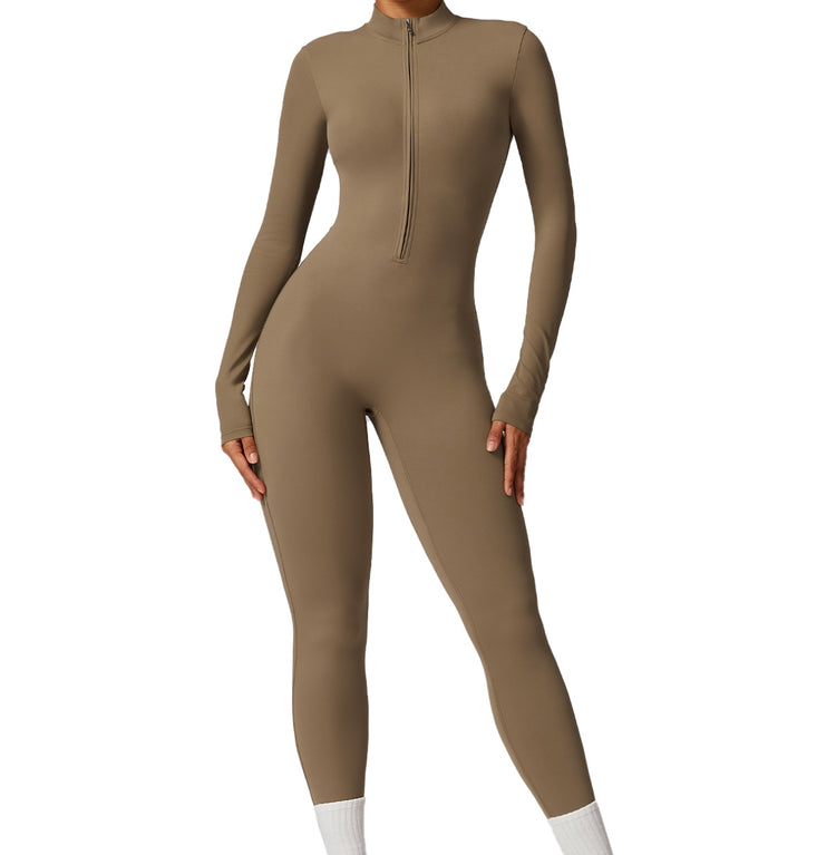 02/2024 Spring high-intensity sports long-sleeved one-piece yoga wear zipper nude fitness one-piece tights 8306