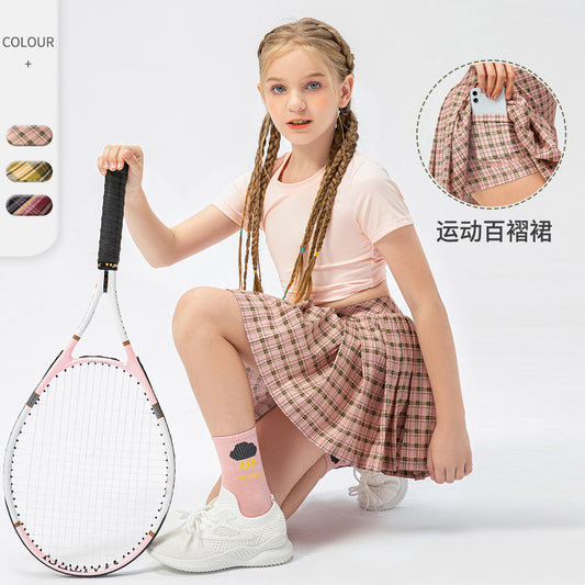 Girls sports tennis skirt with lining plaid pleated skirt children's clothing fake two-piece dance training skirt pants 23409