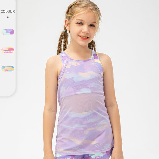 Children's sports vest printed nylon yoga top girls fitness dance training running vest 23101