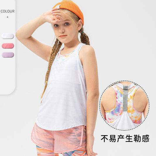 Girls printed yoga sports vest nylon cool skin-friendly dance training running fitness clothes children's clothing 23101