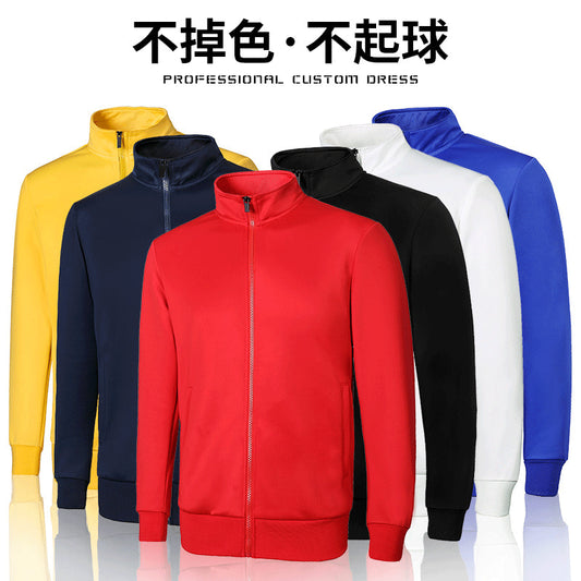Factory wholesale cardigan solid color jacket autumn and winter thin sports long-sleeved zipper collar jacket printed logo sweater