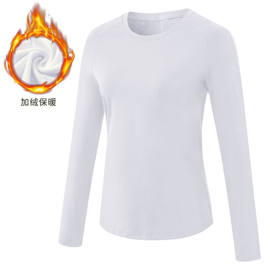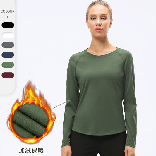 Women's autumn and winter nylon plus velvet warm sports long-sleeved nude double-sided yoga running training fitness suit 12527
