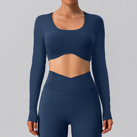 2024 Square neck tight height elastic lean yoga sports long sleeve female professional running speed dry fitness Pilates training top