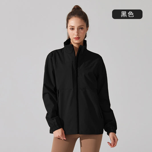 03/2025 Standing collar zipper yoga dress women's coat windproof slim warm top sports running coat 7755