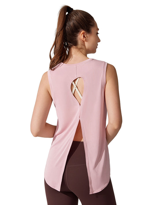 03/2025 Yoga wear sleeveless tops for women with chest pads, sexy backless short waist slimming fitness sports vest D25060
