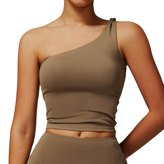 Manufacturer:invich-YW544 (220gsm)Regular price $14.99 USDRegular price$14.99 USDSale price $14.99 USD03/2025 New one-shoulder yoga top, gathering with chest pads, sports bra with lace, small cut shoulders, long sleeves for women