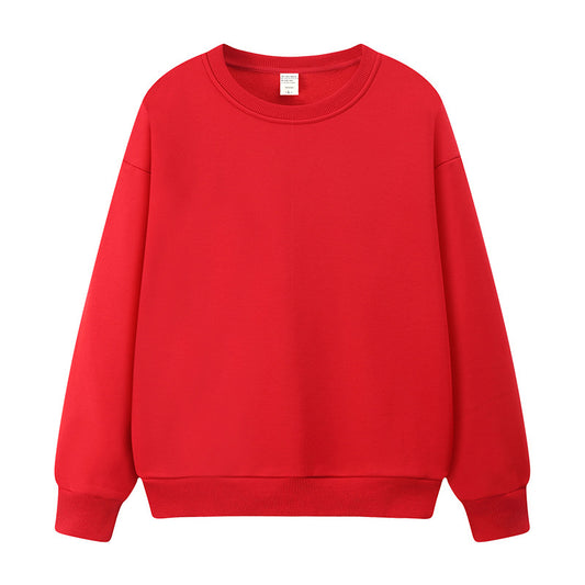 Factory wholesale loose plus velvet solid color round neck autumn and winter top men fall shoulder trend fleece sweater with printed logo