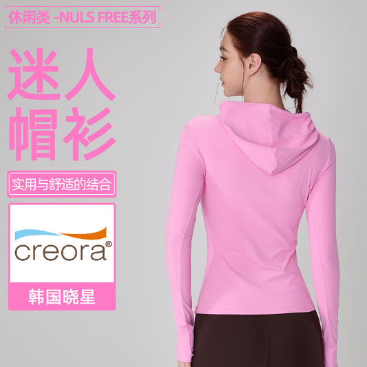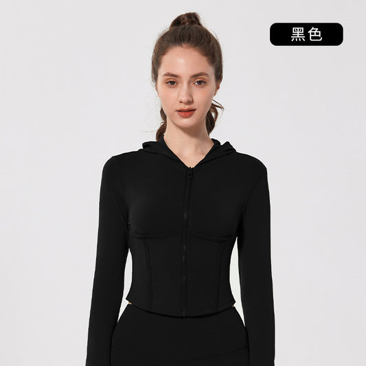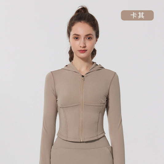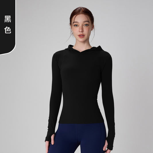 09/2024 Autumn and winter nude hooded fitness clothes slim fit with finger sleeves yoga long sleeve training running casual sports tops for women