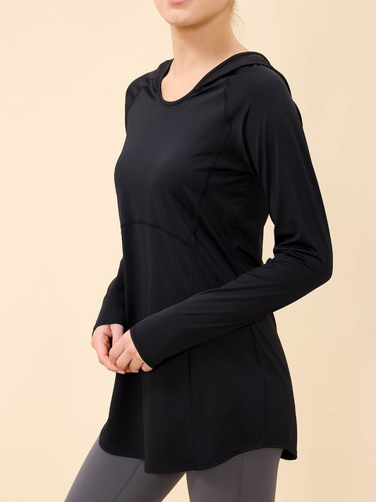 09/2024 Autumn and winter new hooded yoga clothes long sleeve women waist slimming cover hip T-shirt breathable sunscreen fitness running top