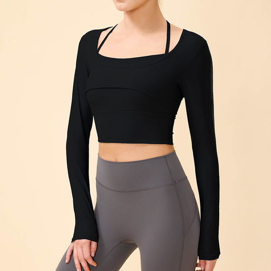 09/2024 Fake two sports yoga long sleeves pure wind square collar tight T-shirt leisure running fitness clothes to prevent exposure