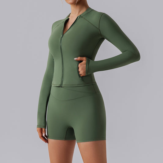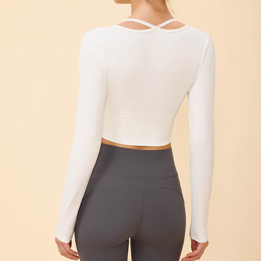 09/2024 Autumn and winter nude beautiful back yoga suit high waist tight yoga long sleeve coat fitness suit women