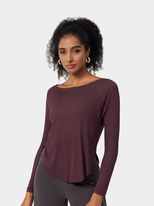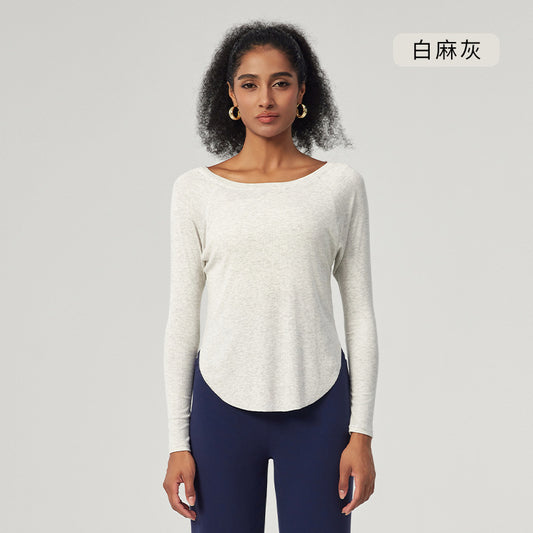09/2024 Autumn and winter off-shoulder yoga top loose meat cover fitness wear Modal skin thin sports fitness smock long sleeve