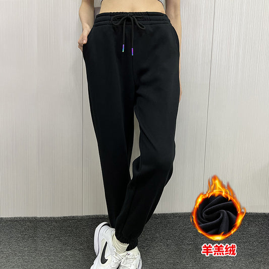 Plus velvet sweatpants thickened heavyweight men's and women's same sports pants 2022 autumn and winter casual loose lamb velvet trousers