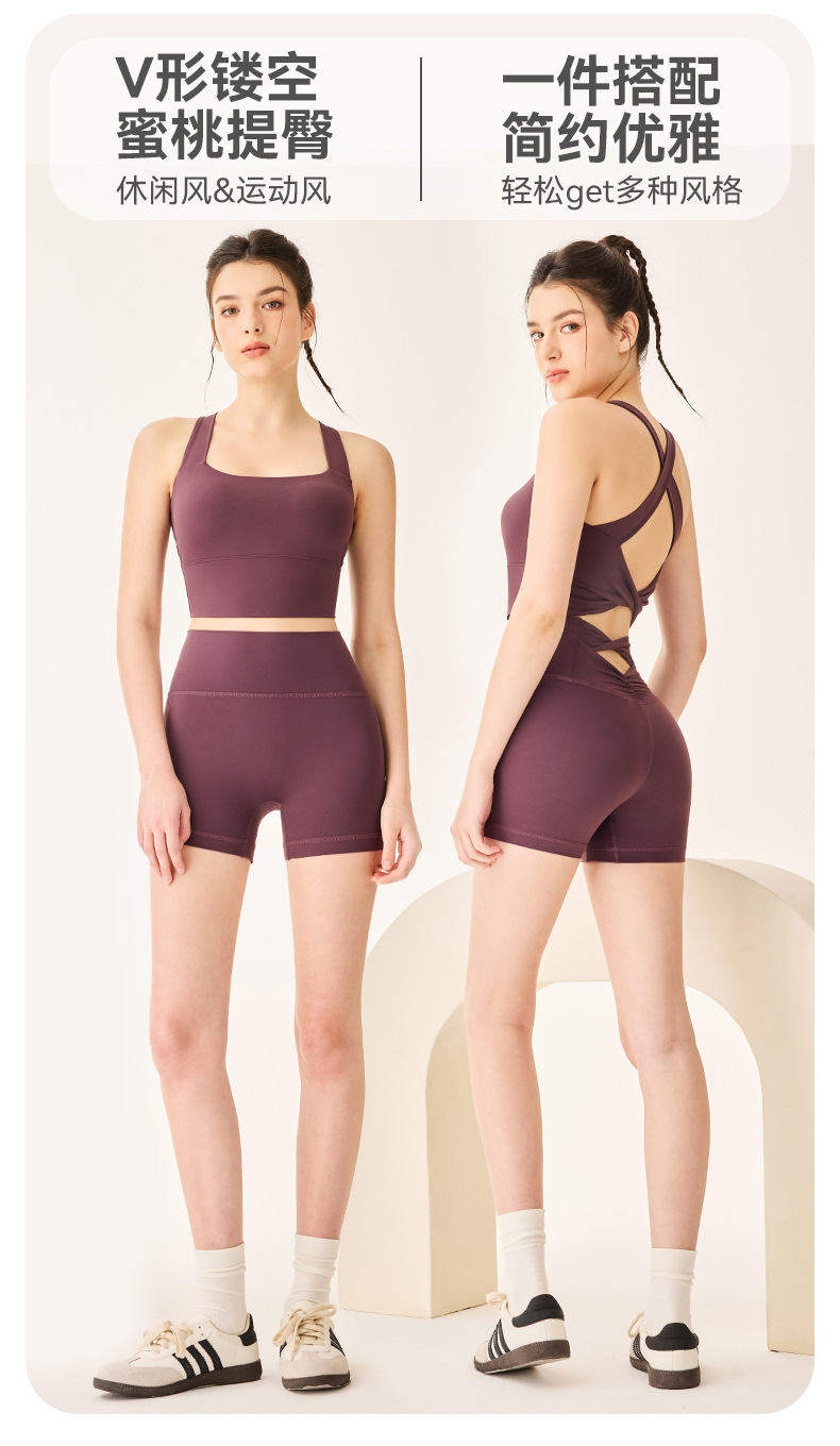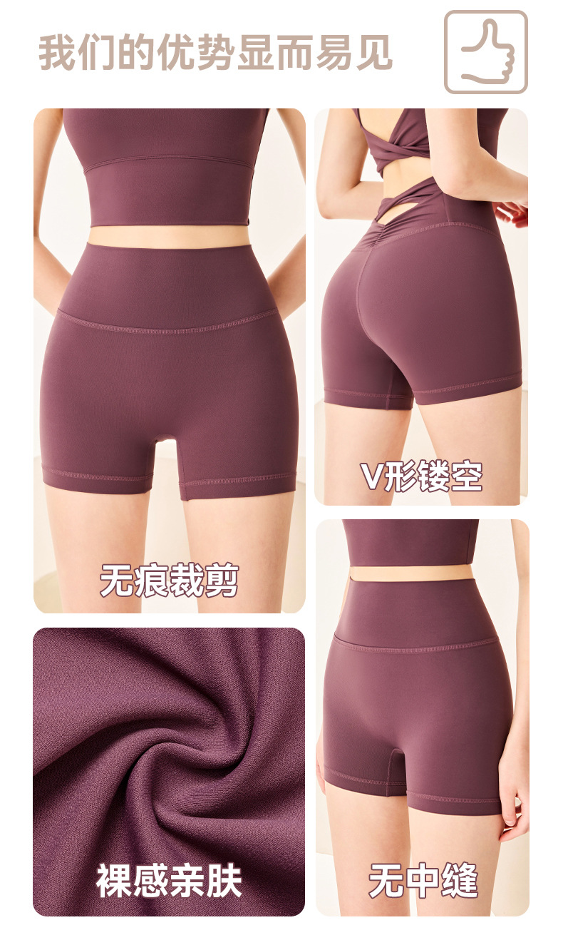 2024 new colors 2022 spring and summer new high waist shorts nude T-line yoga pants women's European and American peach hip lift three-point fitness pants