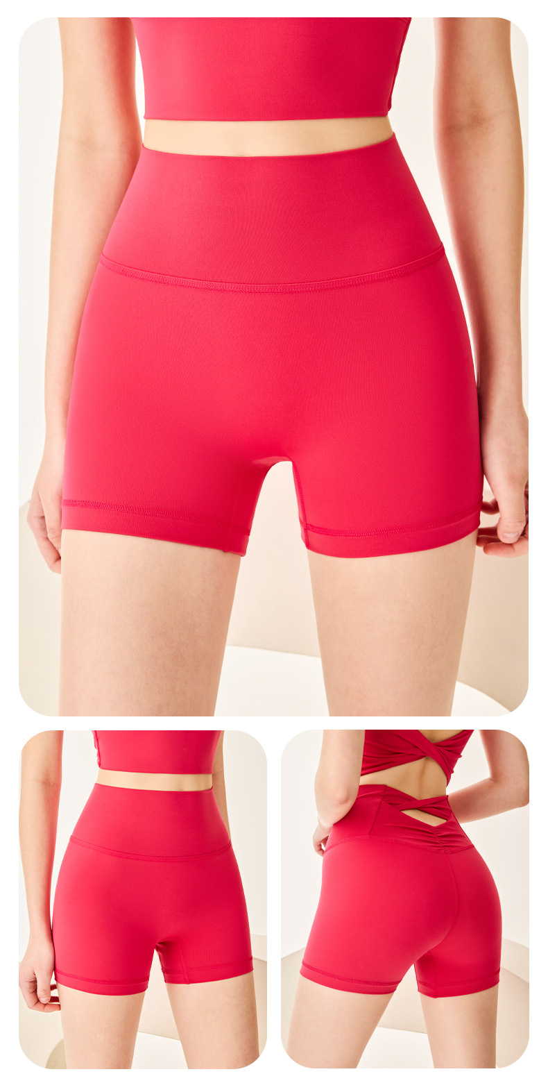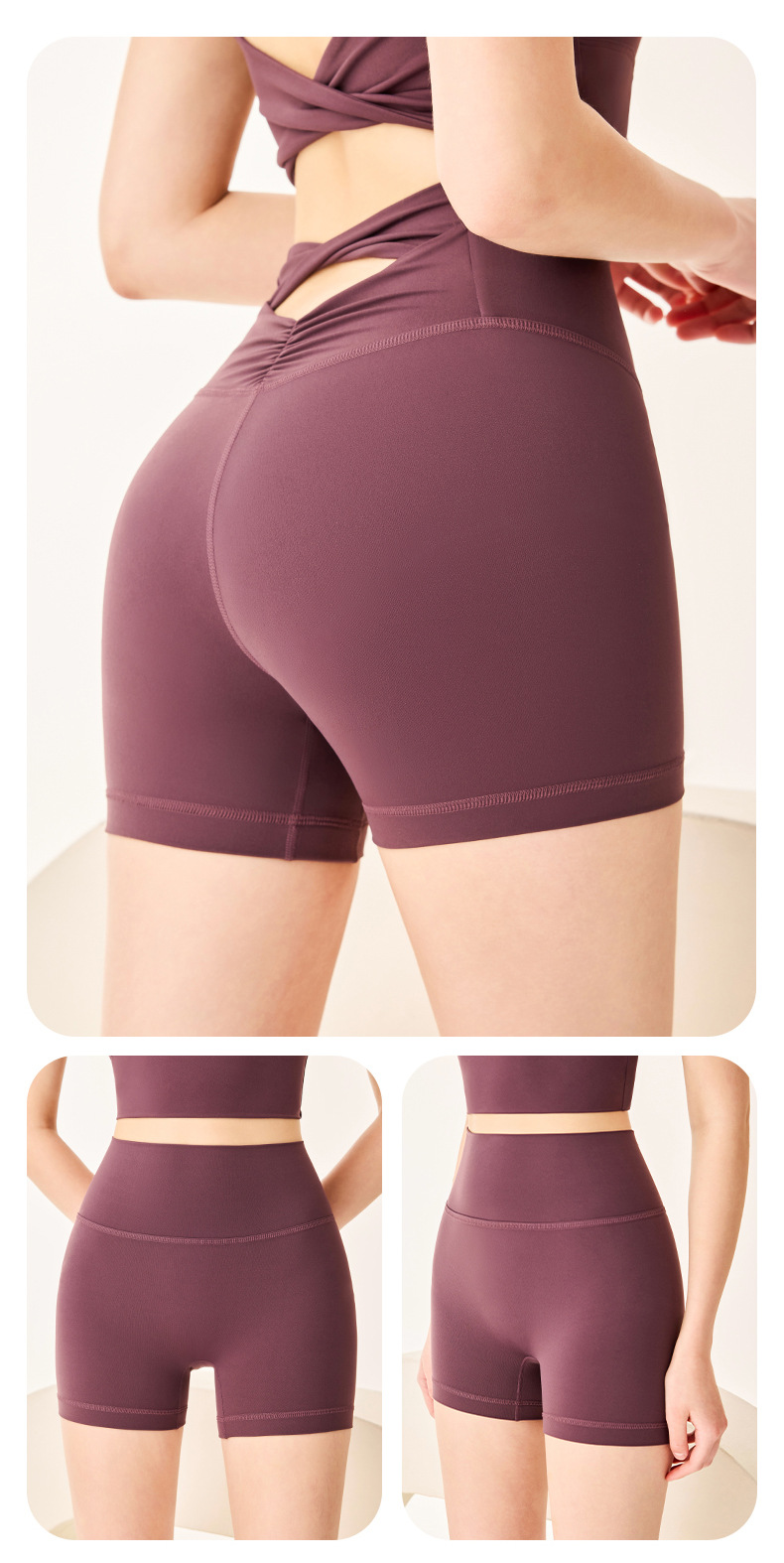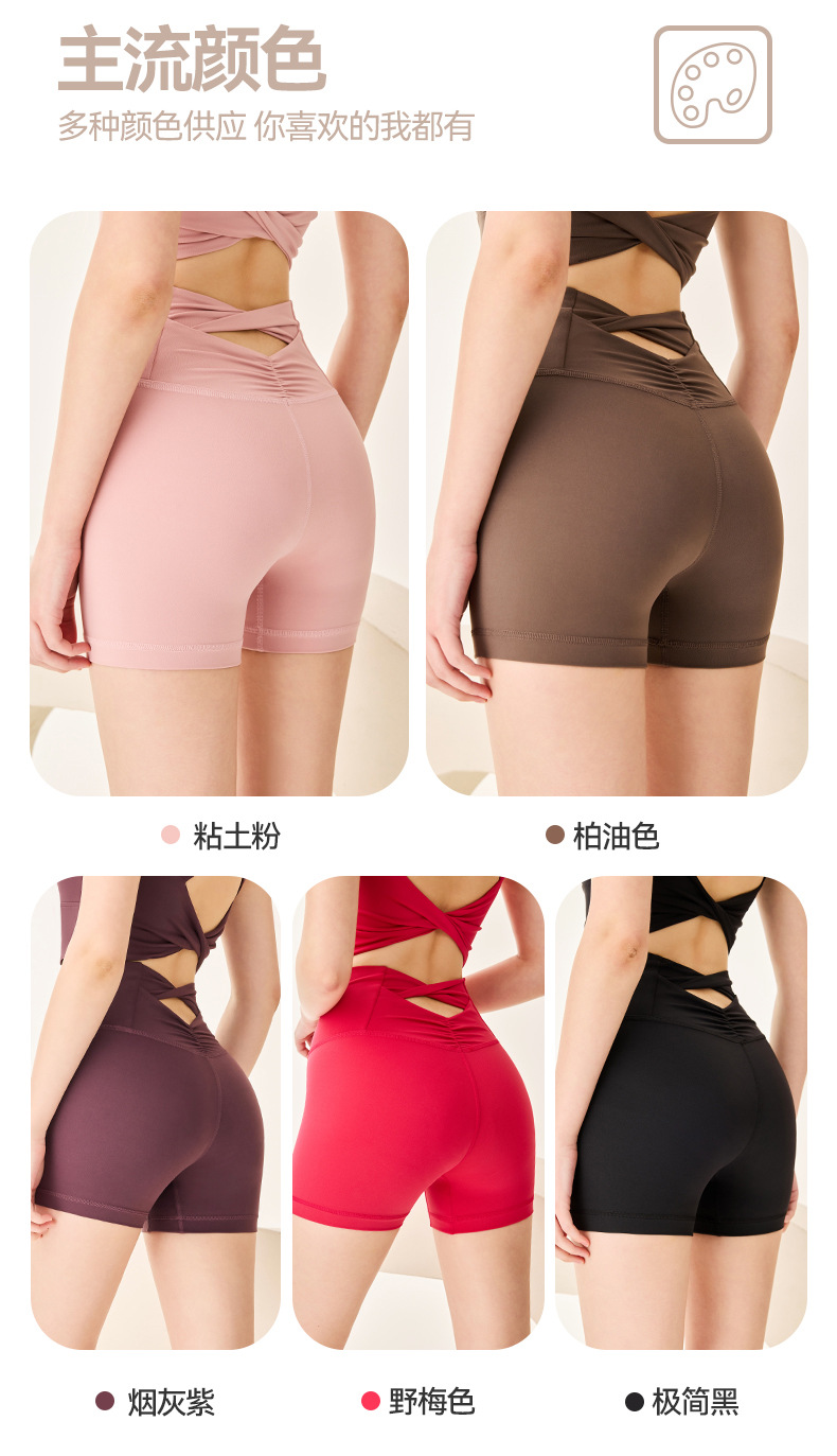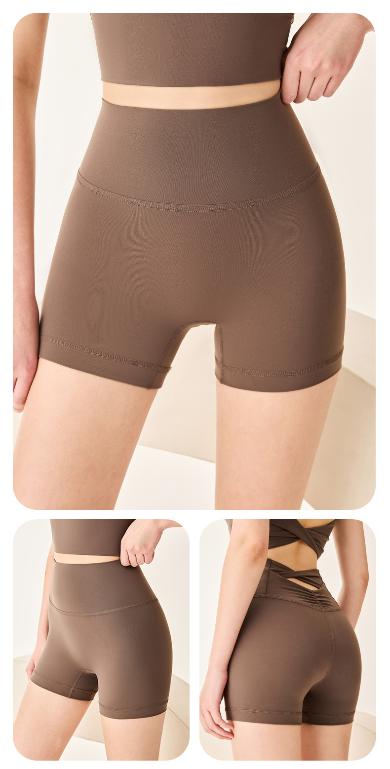 08/2024 Cross high waist yoga shorts tight nude peach hip sports shorts women's outdoor fitness pants 8843