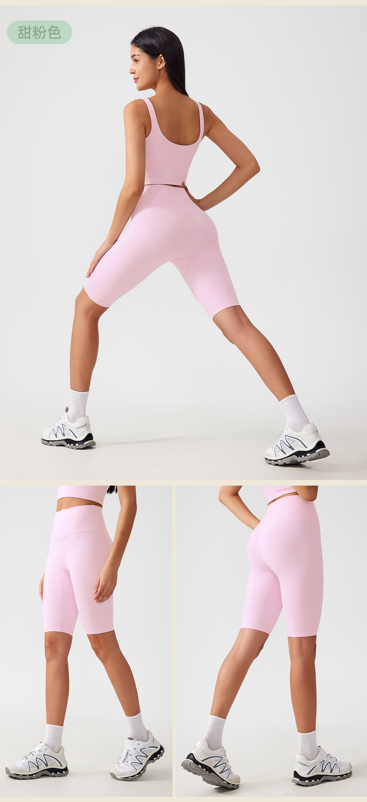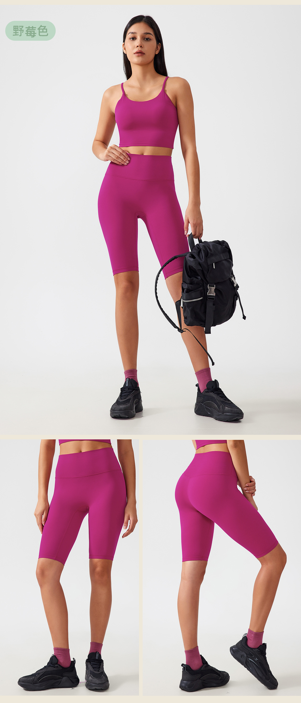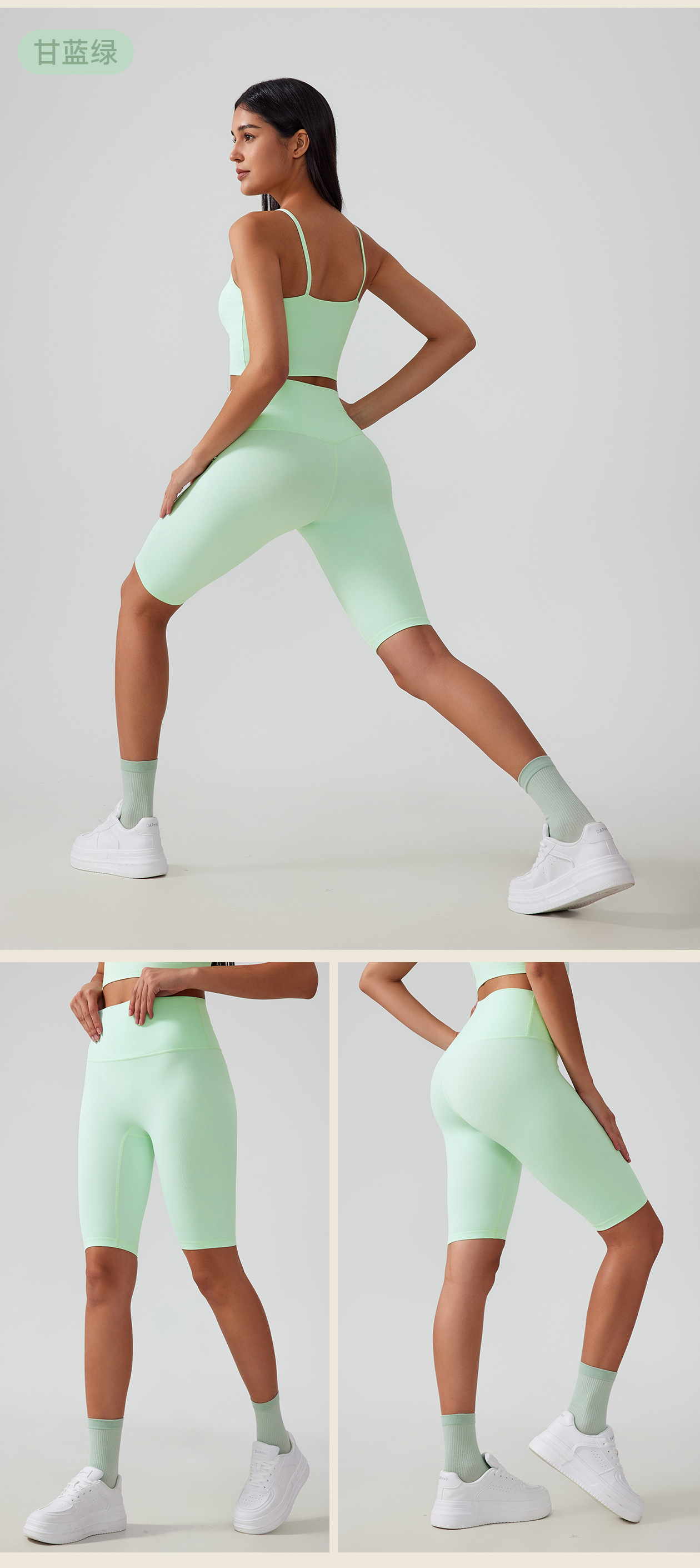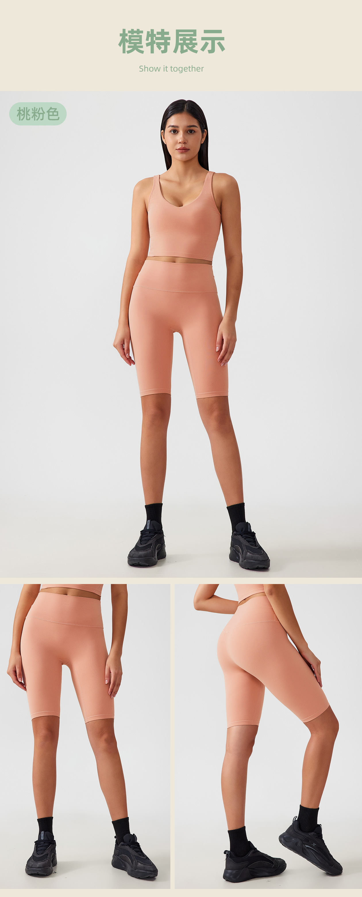 2024 new colors 2022 spring and summer new high waist shorts nude T-line yoga pants women's European and American peach hip lift three-point fitness pants