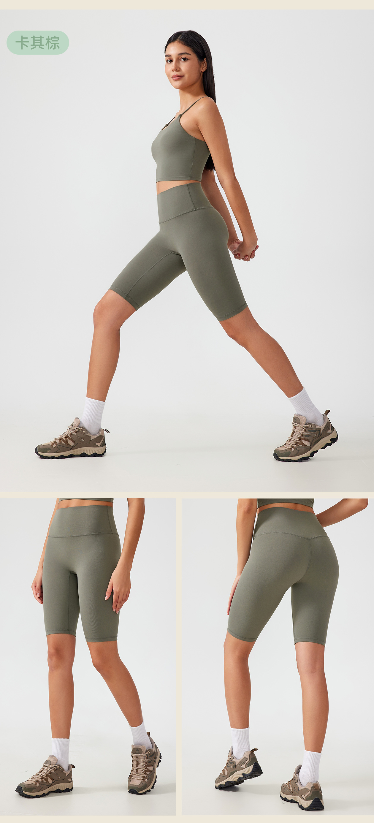08/2024 Cross high waist yoga shorts tight nude peach hip sports shorts women's outdoor fitness pants 8843
