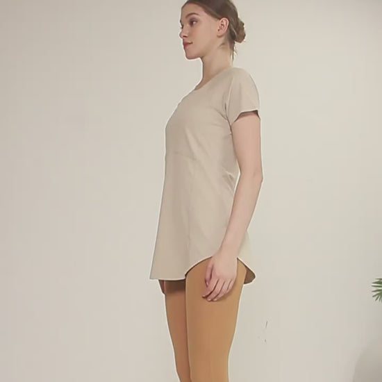 Spring and summer new long style cover the buttocks and show thin yoga clothing short-sleeved running fitness sportswear for women