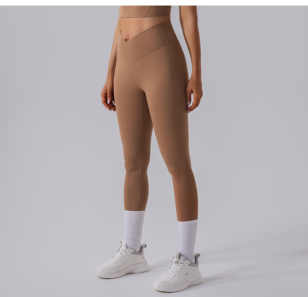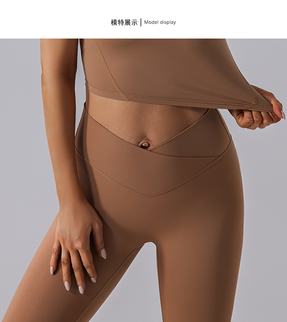 05/2025 Tight yoga pants, crossed high-waisted color-blocking tight pants, women's sports running fitness pants 9253
