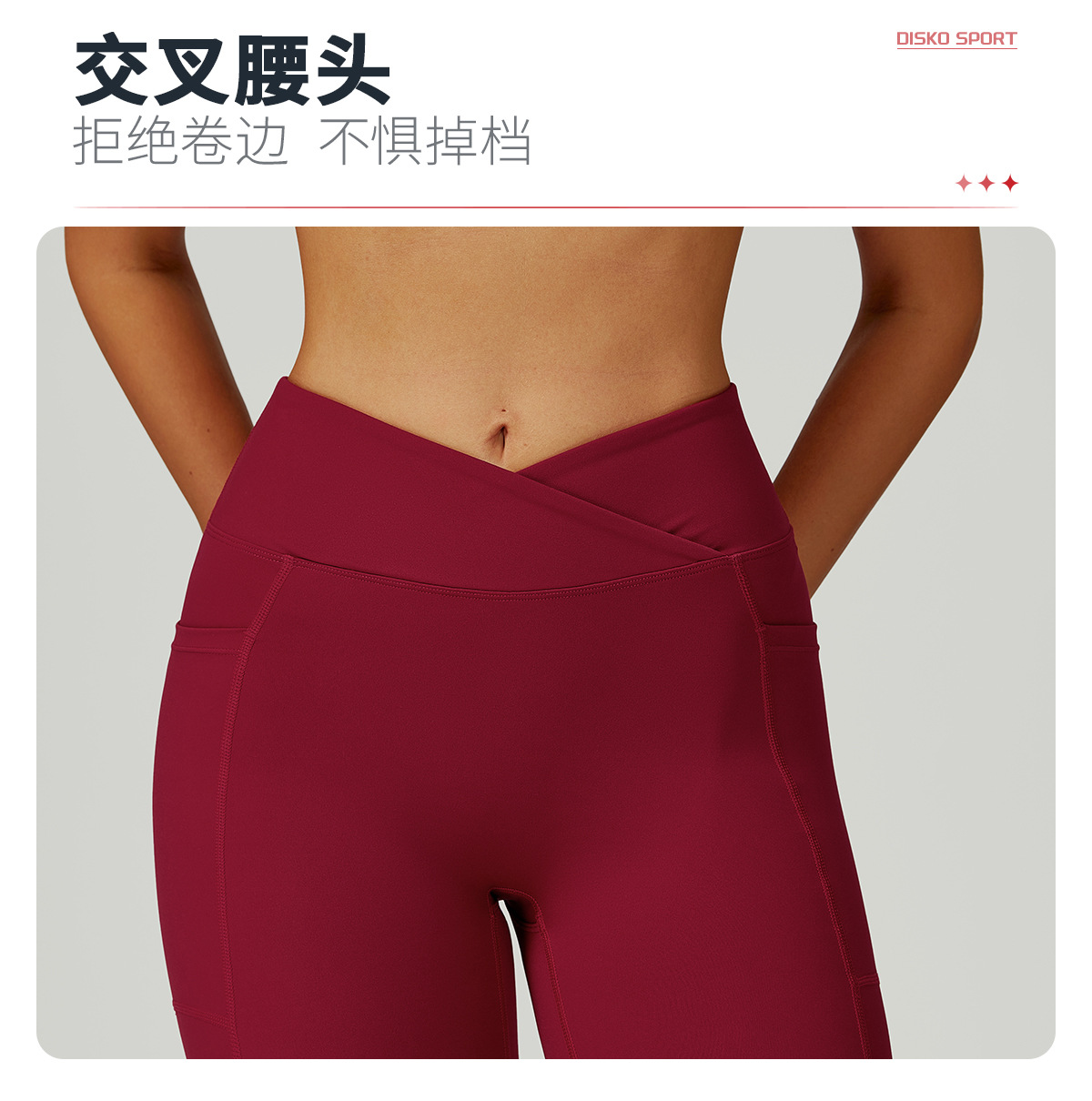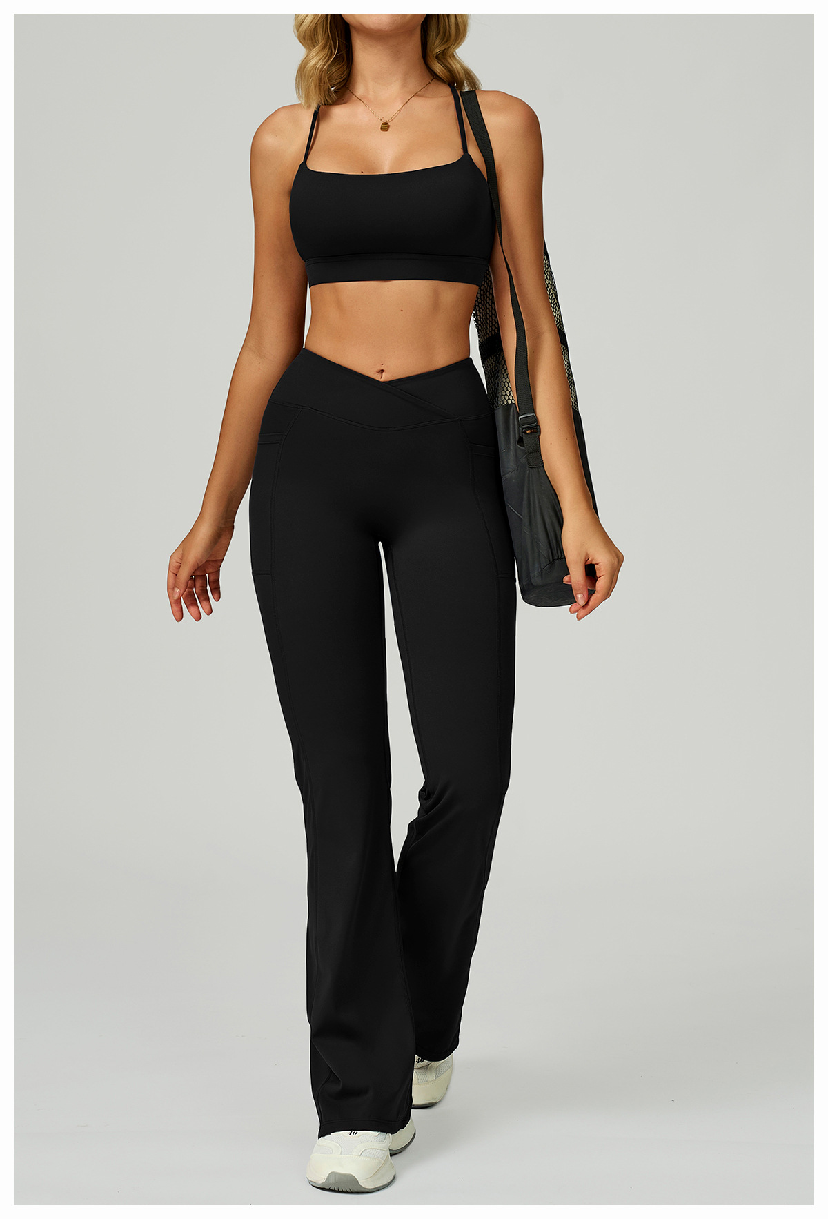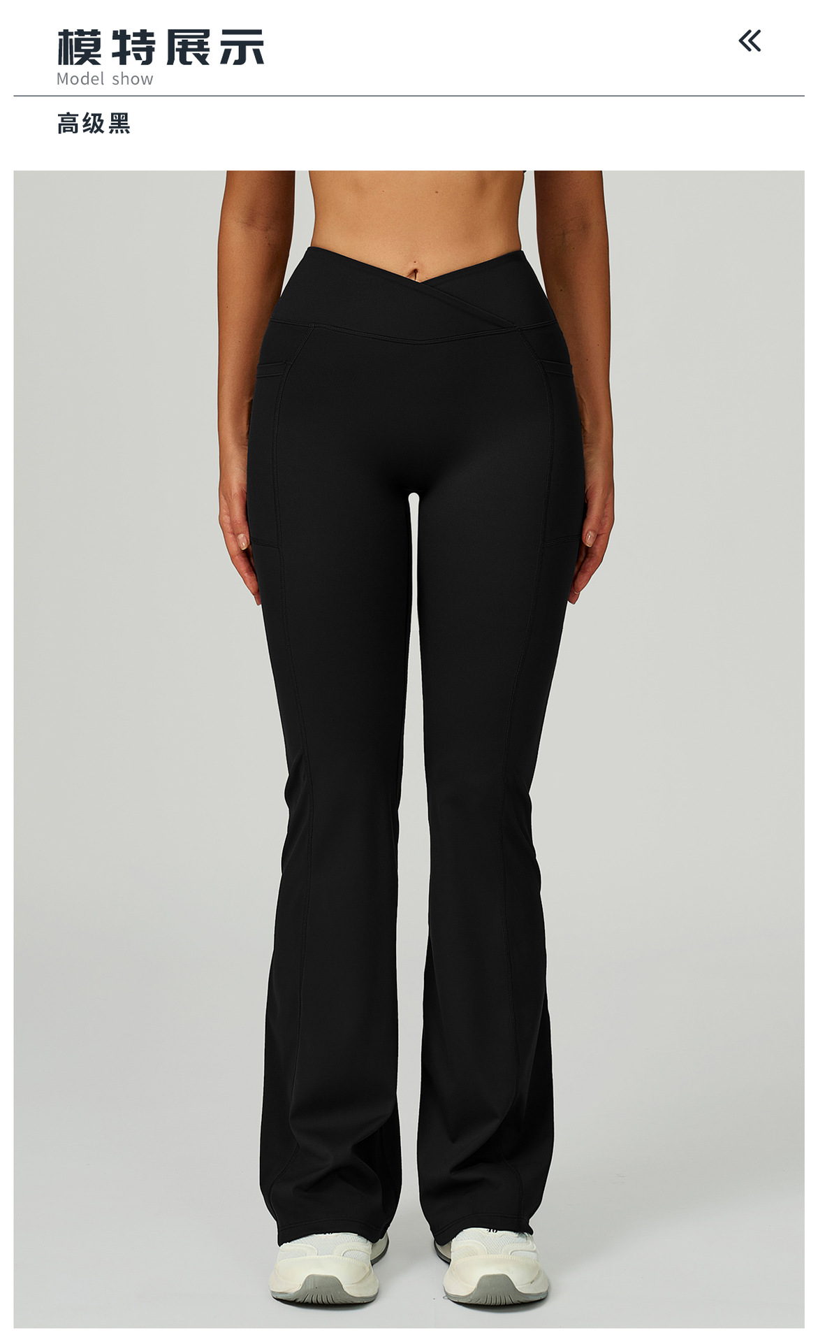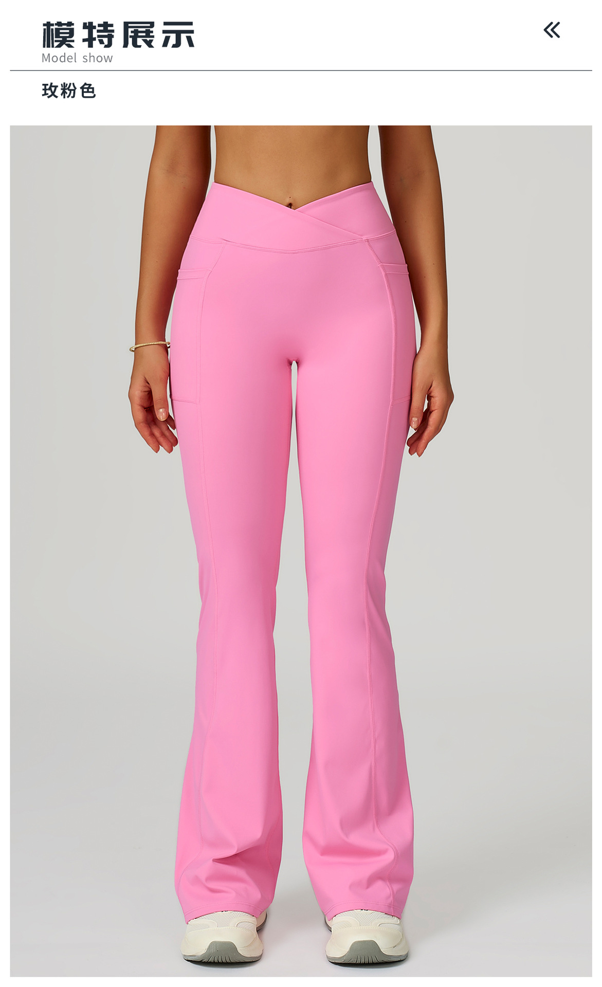 07/2025 High waist nude flared pants women's cross waist wide leg flared pants outdoor leisure sports flared pants 2030