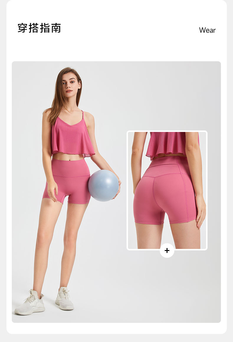 2024 new colors 2022 spring and summer new high waist shorts nude T-line yoga pants women's European and American peach hip lift three-point fitness pants