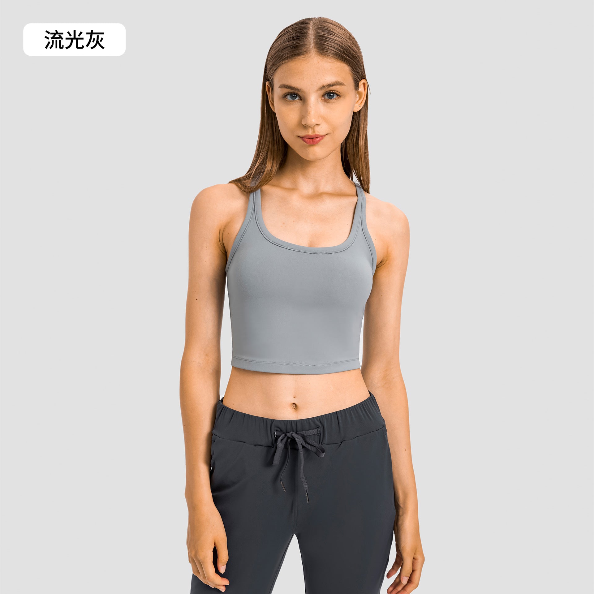 03/2025 Summer Yoga vest top Women with breast pad Beautiful back halter vest no underwire push-up bra