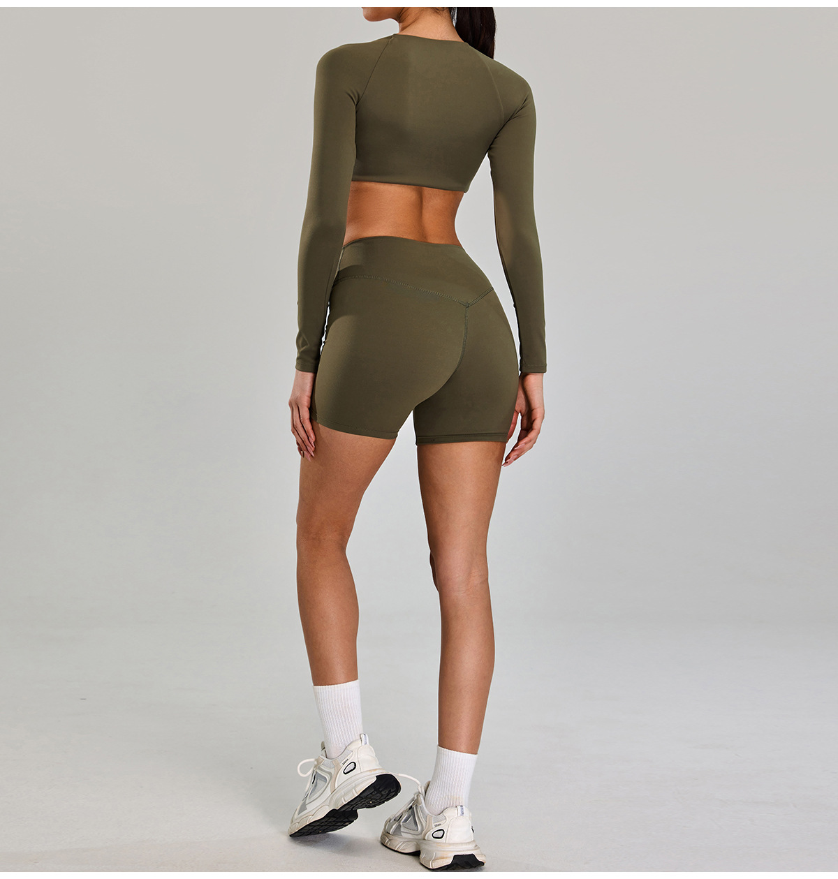 08/2024 Cross high waist yoga shorts tight nude peach hip sports shorts women's outdoor fitness pants 8843