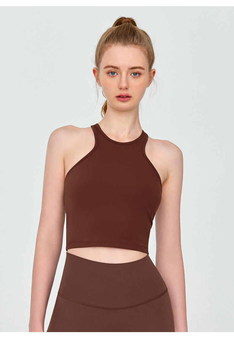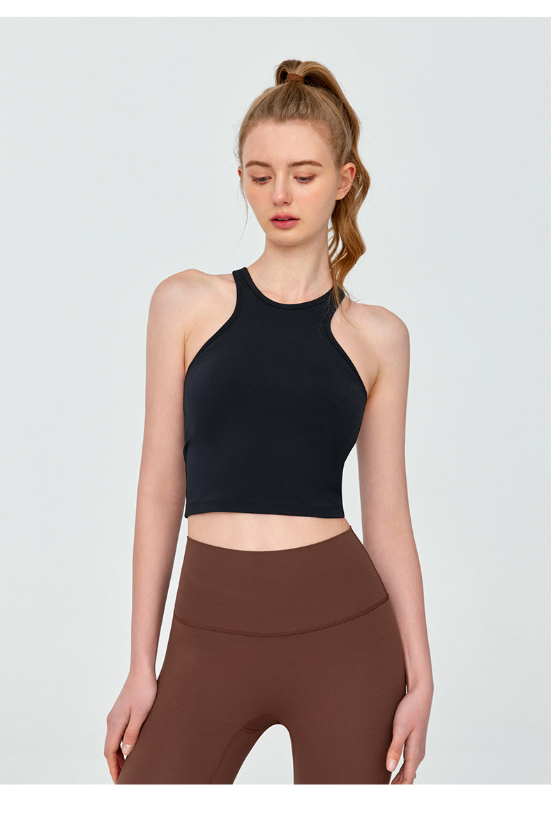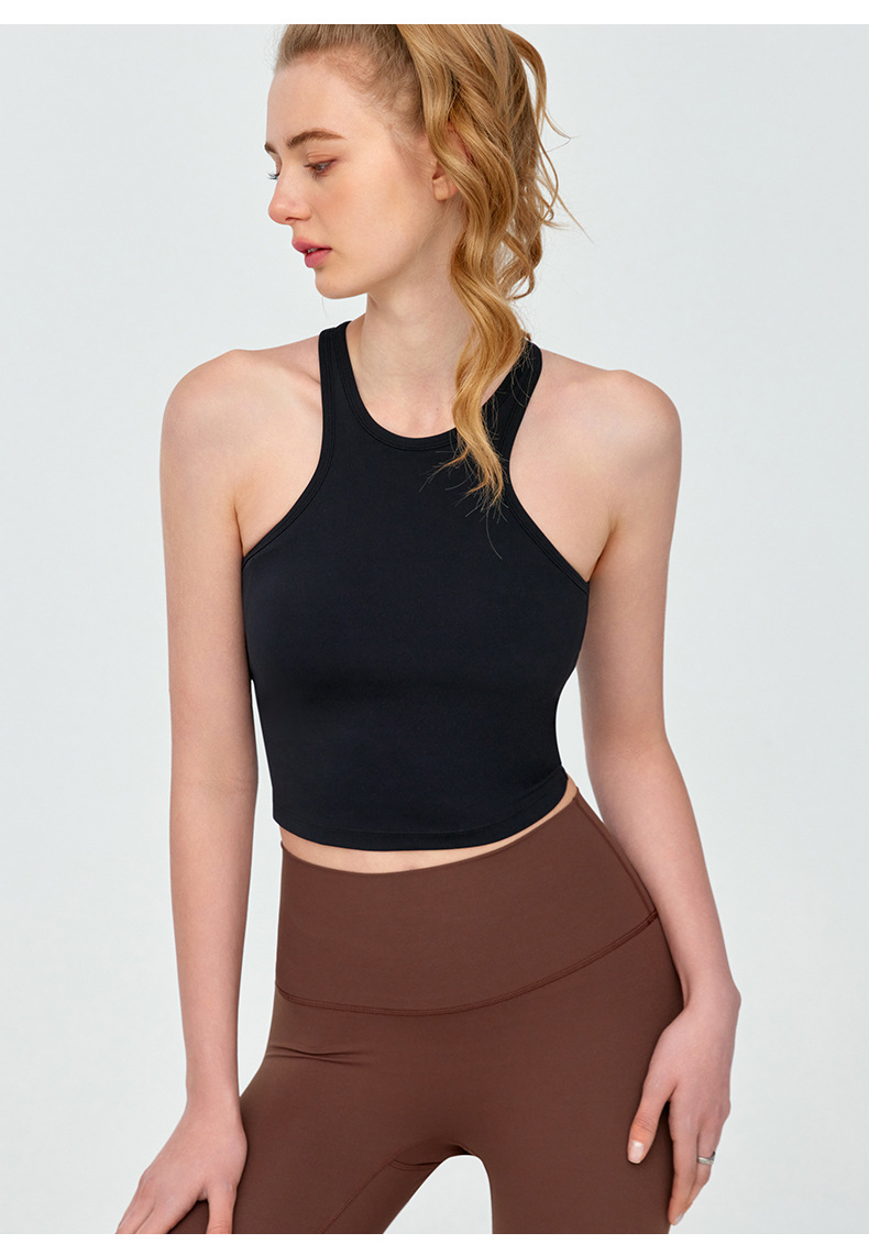 08/2024 One-piece fixed cup yoga vest Women's sleeveless halter sports vest slimming fitness vest
