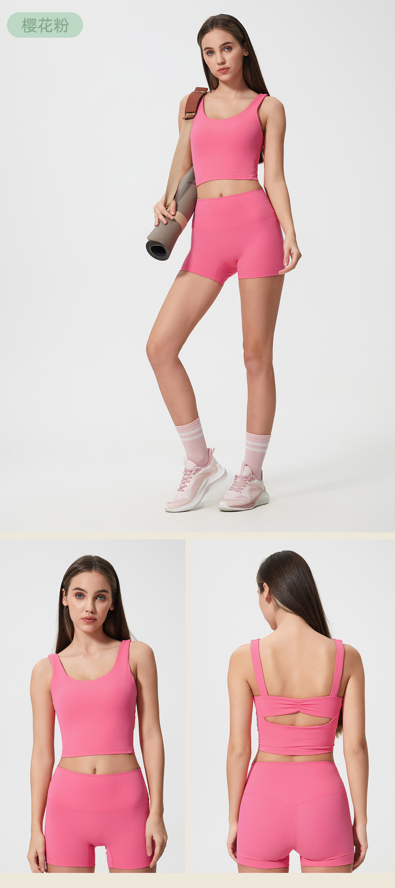 01/2025 High-waisted tight-fitting three-part yoga pants women's hip peach sports shorts quick-drying outdoor fitness pants