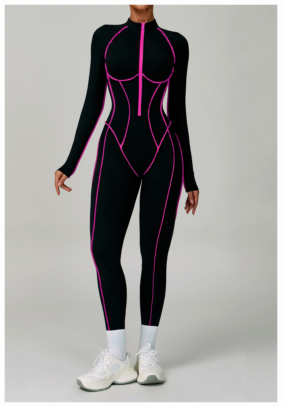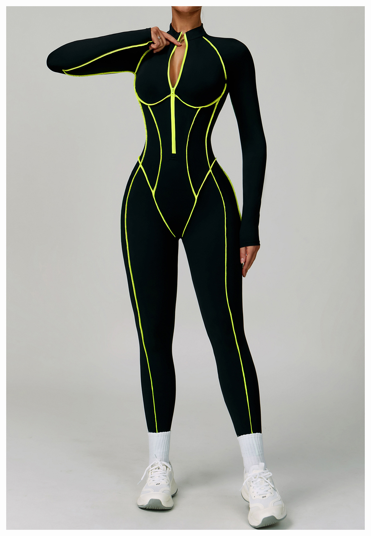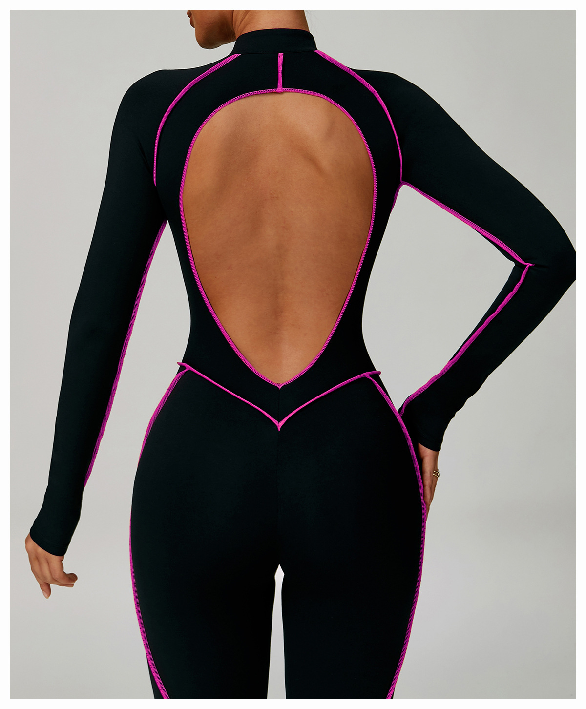 06/2025 Contrast color one-piece quick-drying yoga suit beautiful back tight fitness suit high-intensity sports running jumpsuit 9317