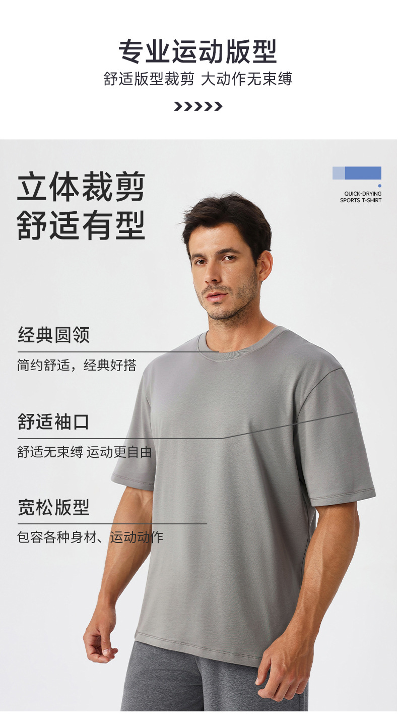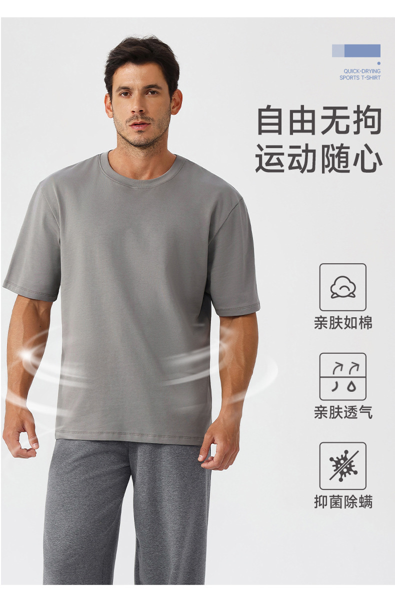 06/2025 Men's antibacterial quick-drying sports T-shirt loose breathable running fitness clothes outdoor sports casual short sleeve 51234