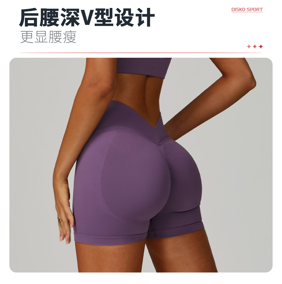 2024 new colors 2022 spring and summer new high waist shorts nude T-line yoga pants women's European and American peach hip lift three-point fitness pants