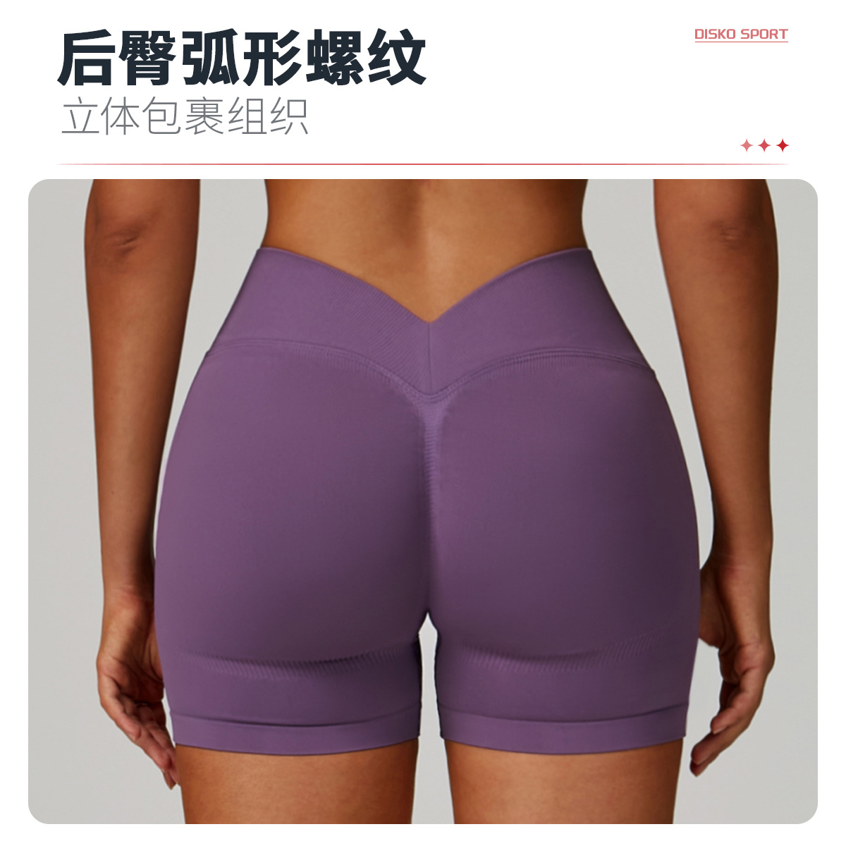 08/2024 Cross high waist yoga shorts tight nude peach hip sports shorts women's outdoor fitness pants 8843