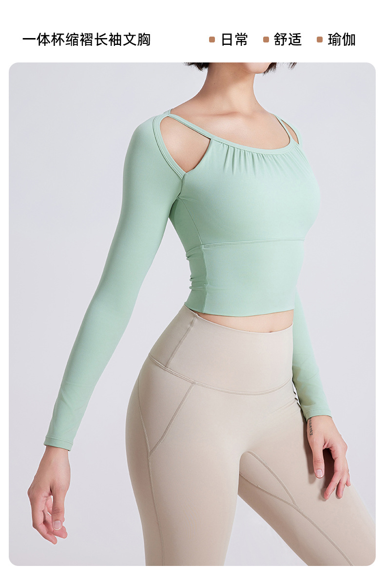 10/2023 Autumn and winter fixed chest mat yoga wear long sleeve pleated slim-fit blazer quick-dry running fitness wear