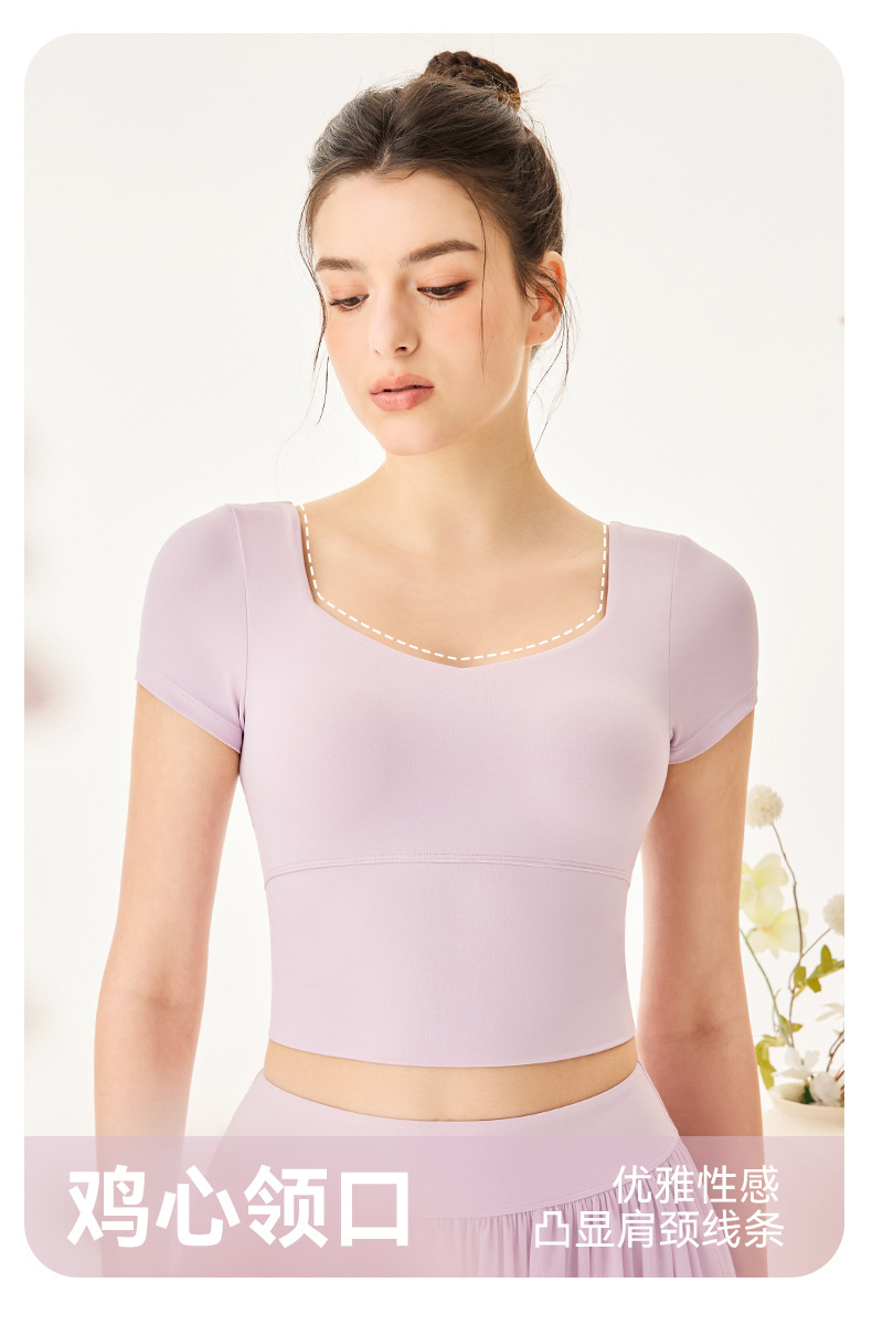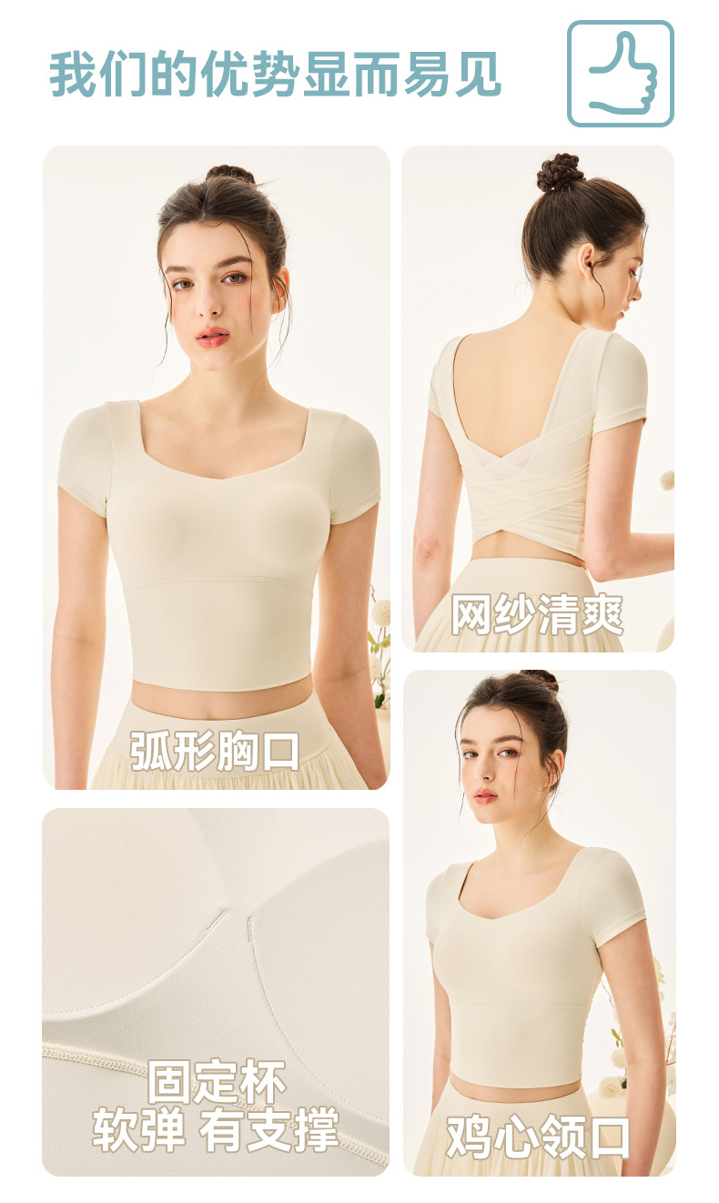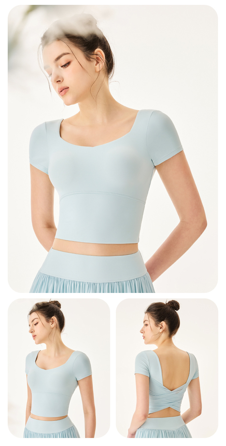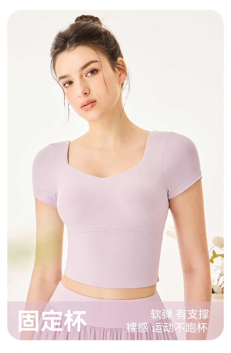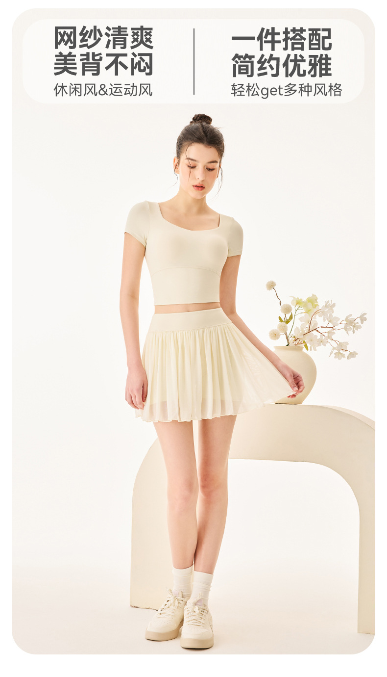 06/2025 New style sports yoga clothes for women with chest pads square collar short-sleeved T-shirt quick-drying breathable sports skirt anti-exposure suit