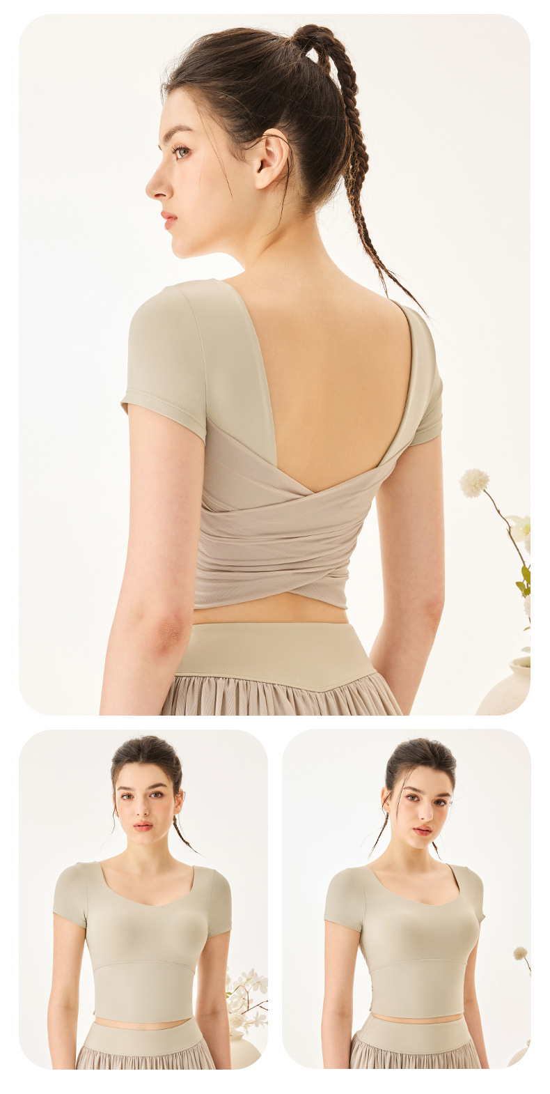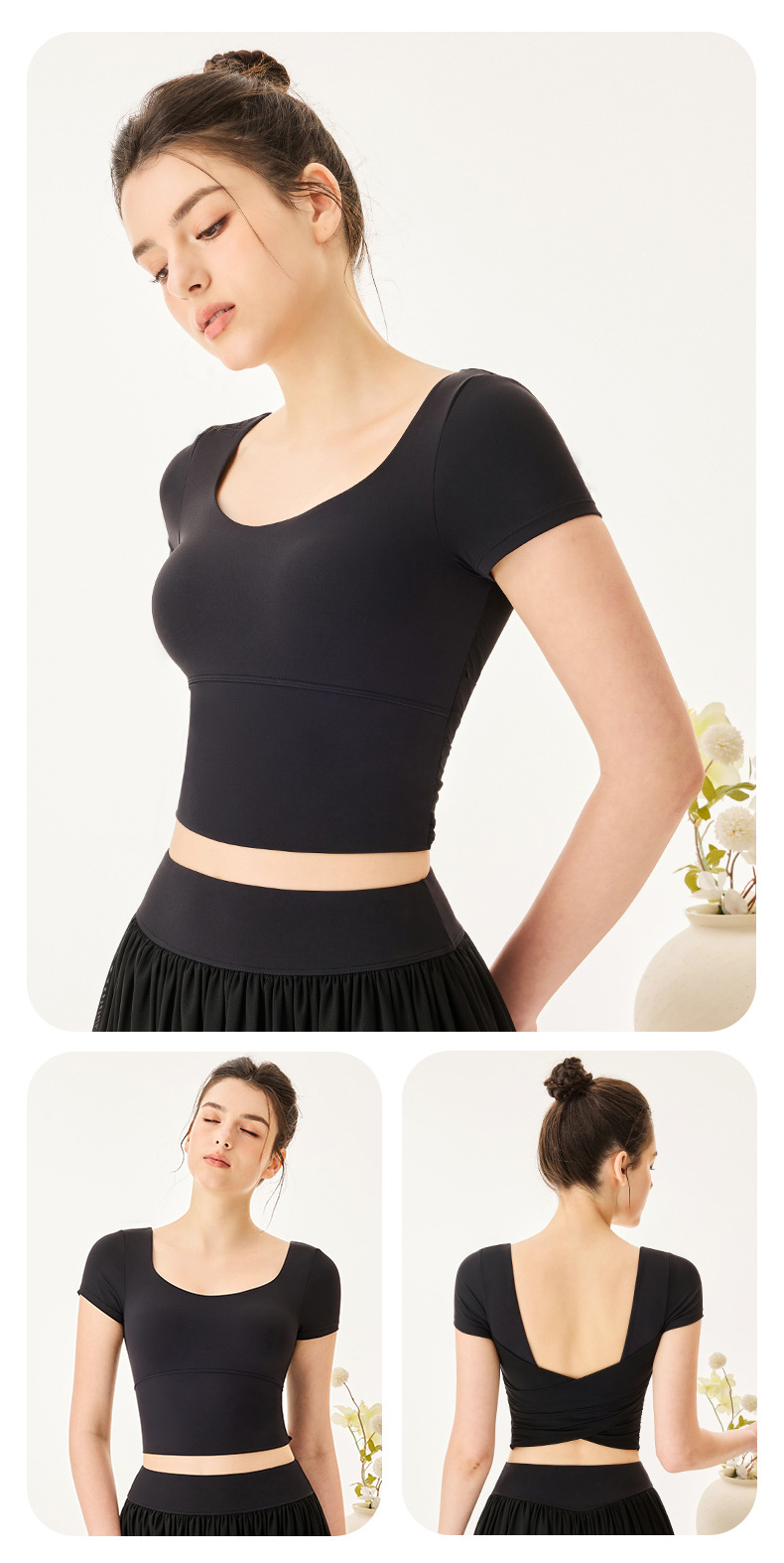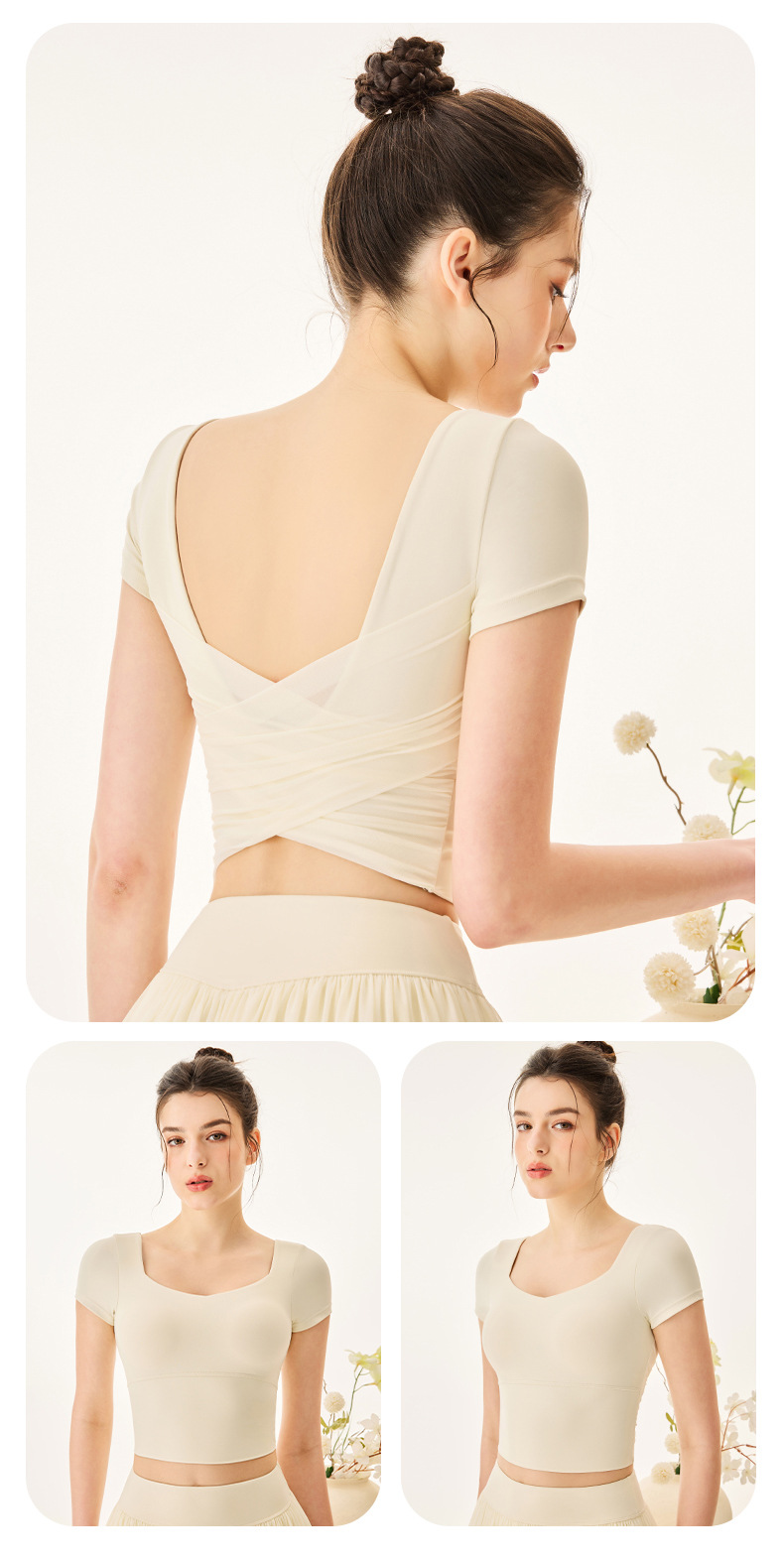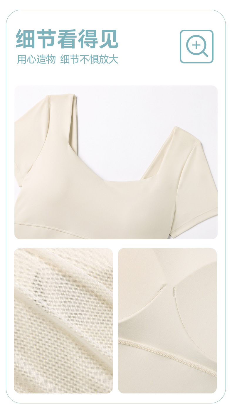 06/2025 New style sports yoga clothes for women with chest pads square collar short-sleeved T-shirt quick-drying breathable sports skirt anti-exposure suit