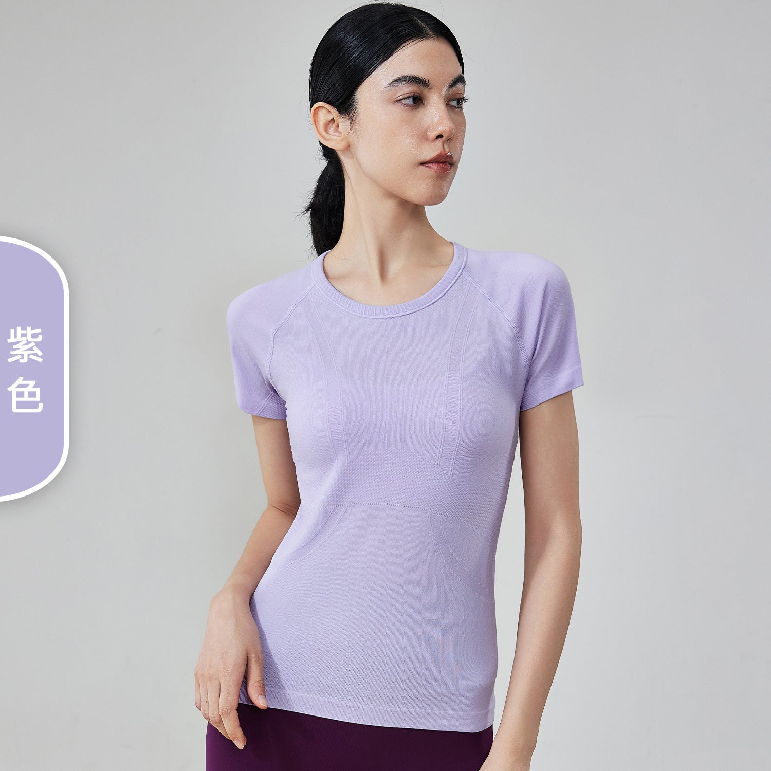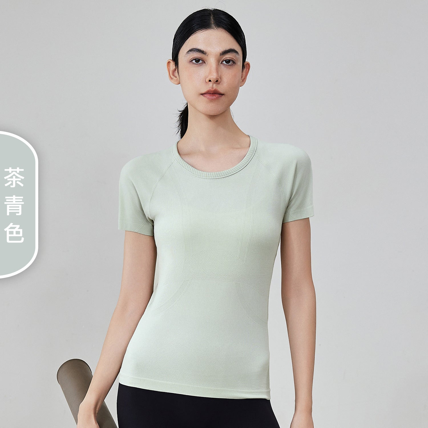 09/2024 Yoga tops for women, nude seamless, slim fit, breathable, running, exercise, fitness, short sleeves, waisted, round neck, yoga clothes