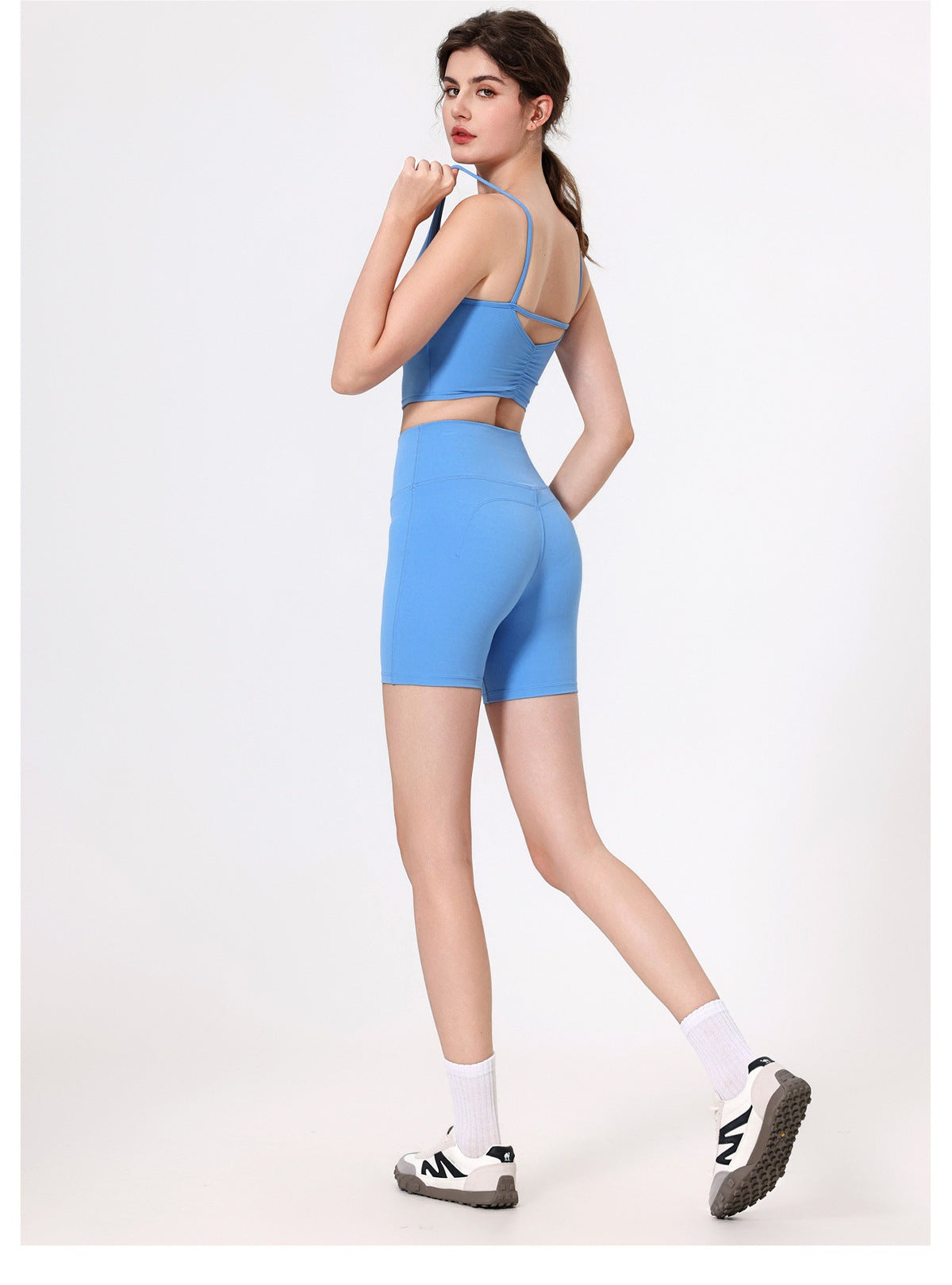 2024 new colors 2022 spring and summer new high waist shorts nude T-line yoga pants women's European and American peach hip lift three-point fitness pants