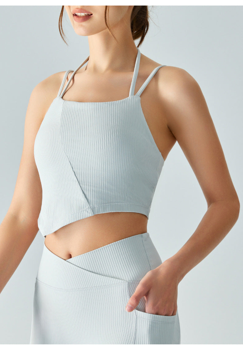 New ribbed double shoulder straps sports bra women's back sloping shoulder straps yoga top with chest pad quick-drying fitness vest