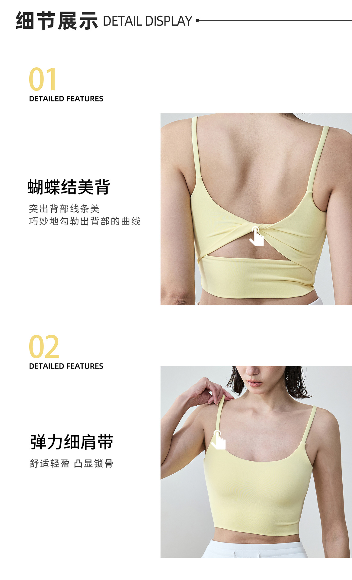 03/2025 Summer Yoga vest top Women with breast pad Beautiful back halter vest no underwire push-up bra