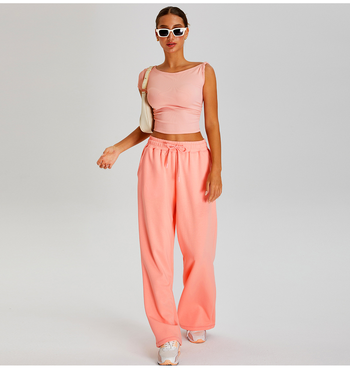 05/2025 Casual and versatile wide-leg pants, women's outdoor sports, elastic drawstring long pants, loose yoga and fitness pants