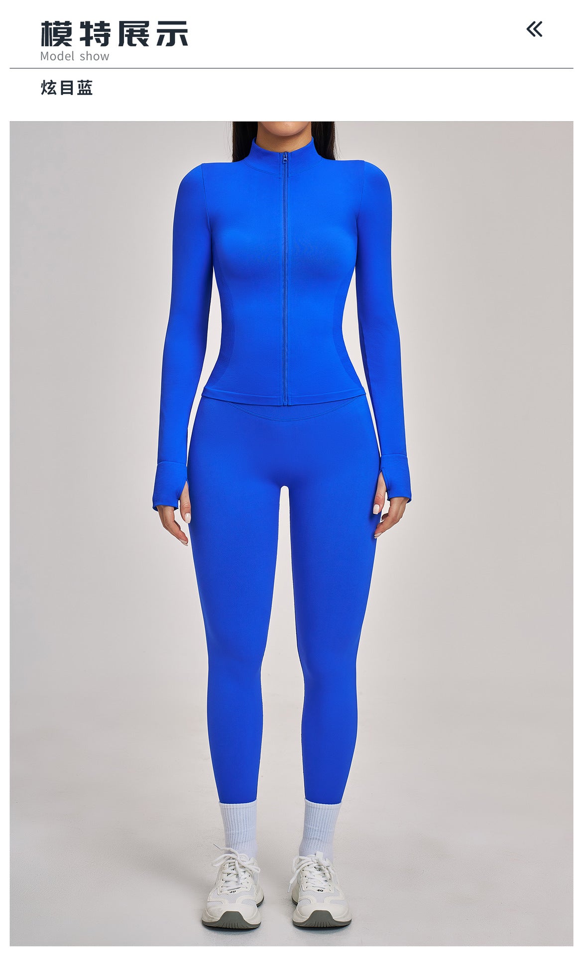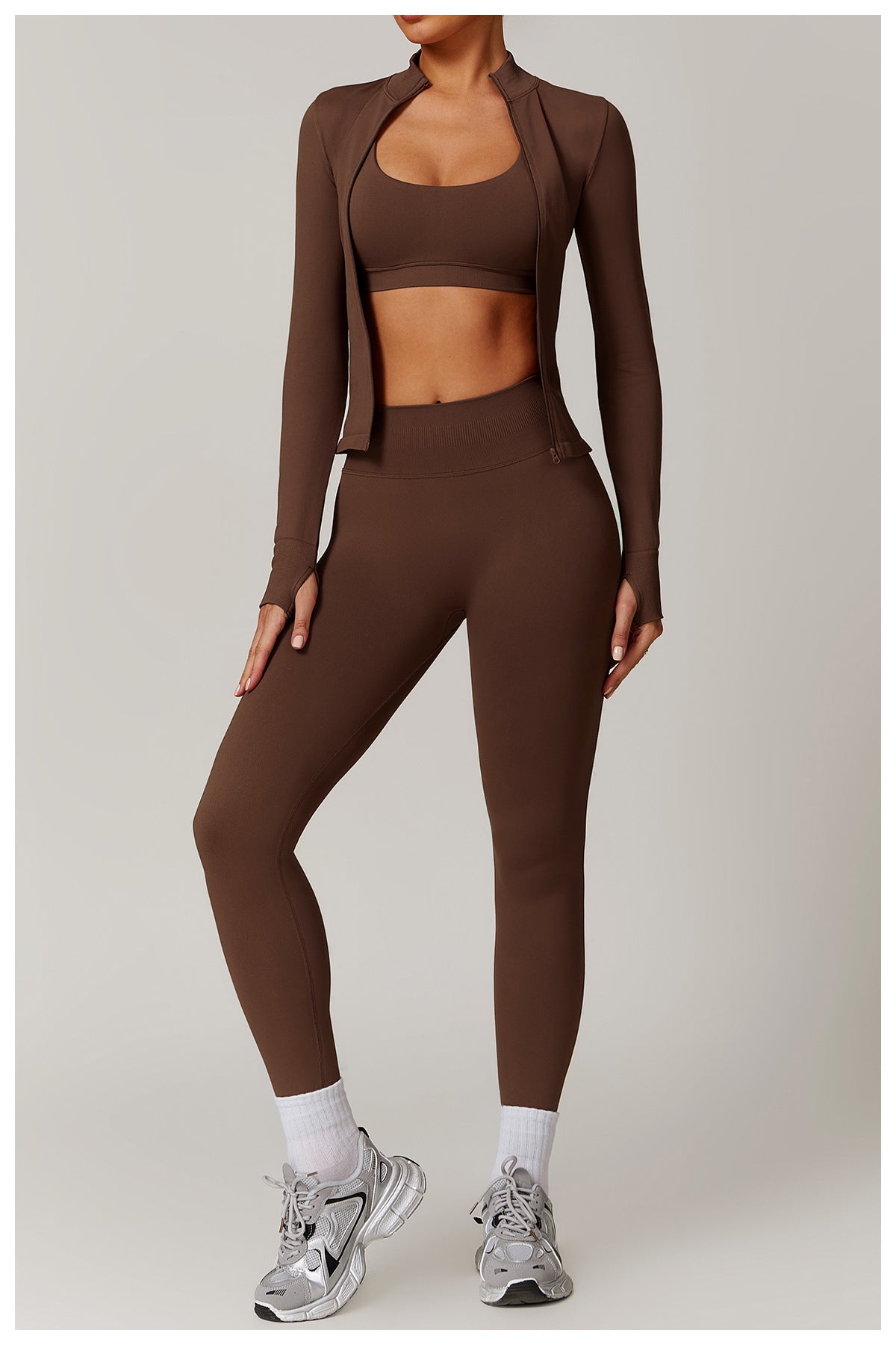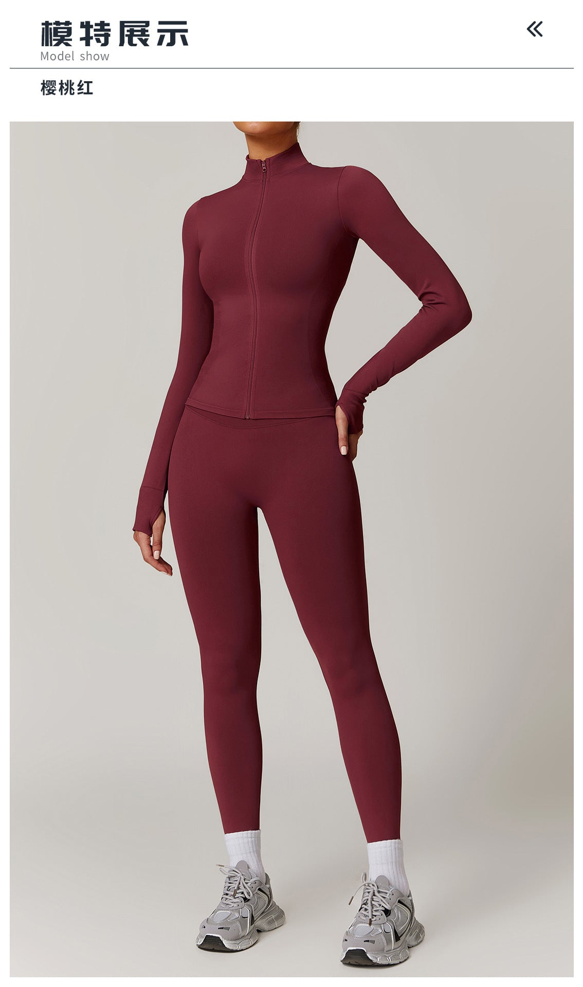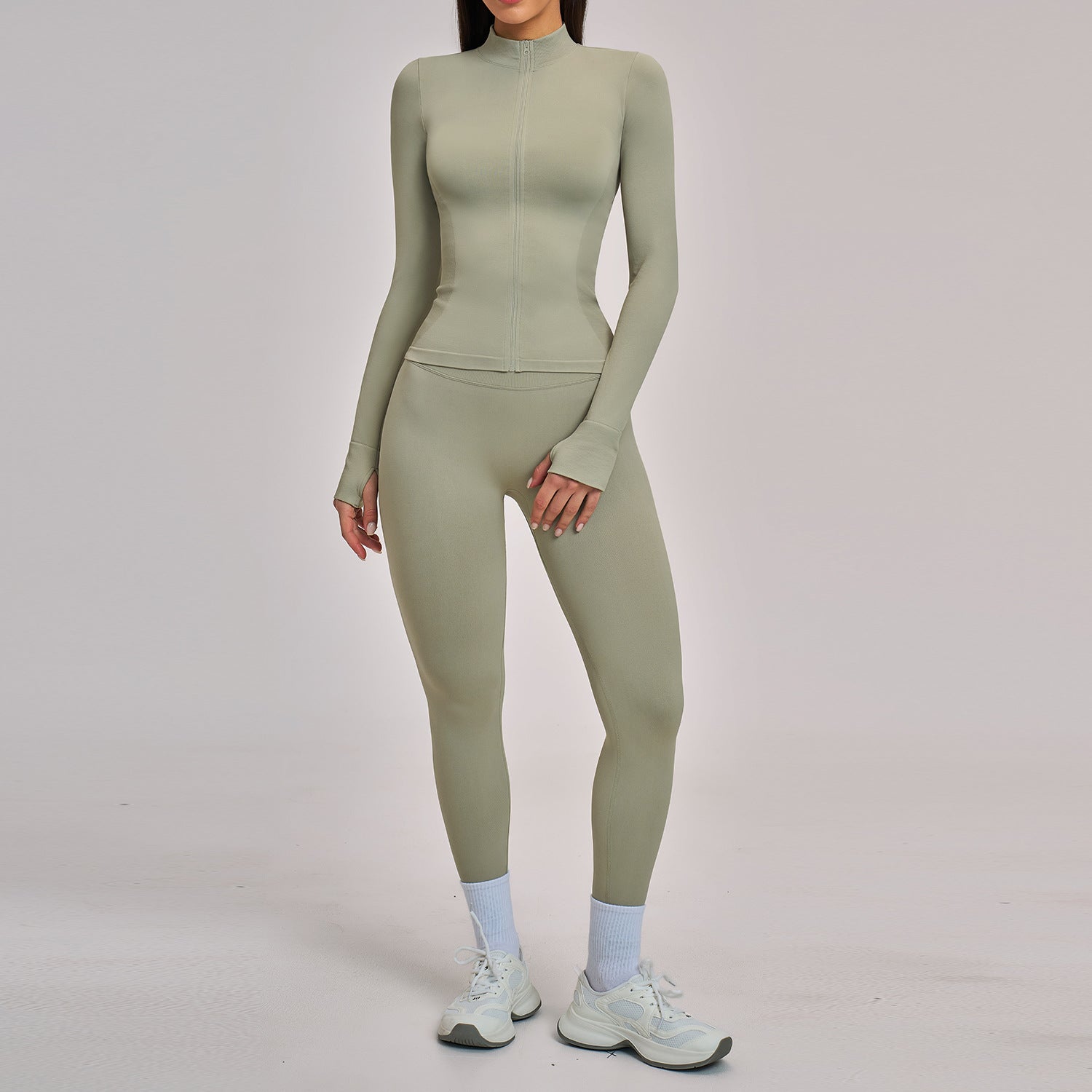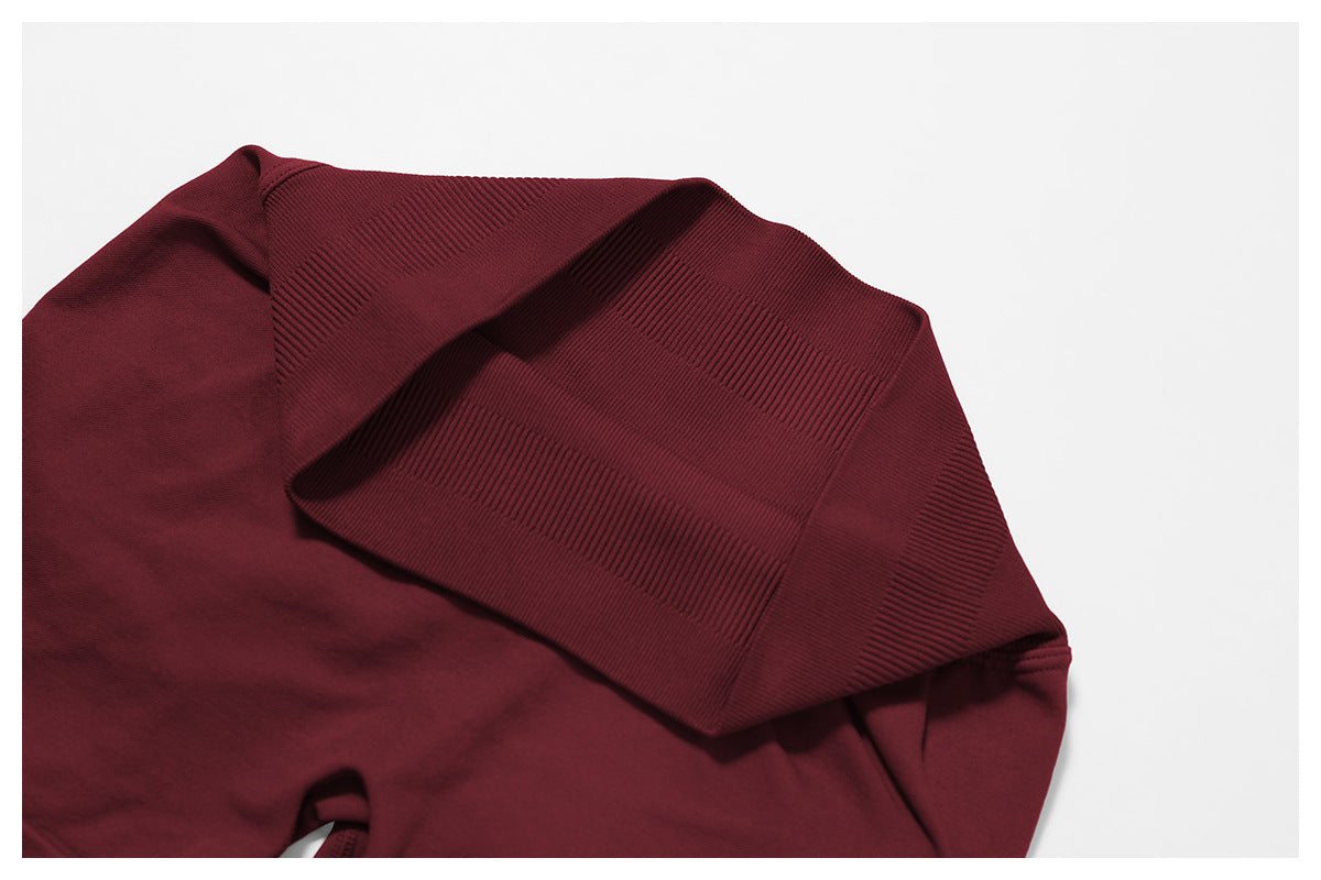 03/2026 Seamless stand-up collar zipper yoga set, windproof, slim fit, warm top, sports running set 7755