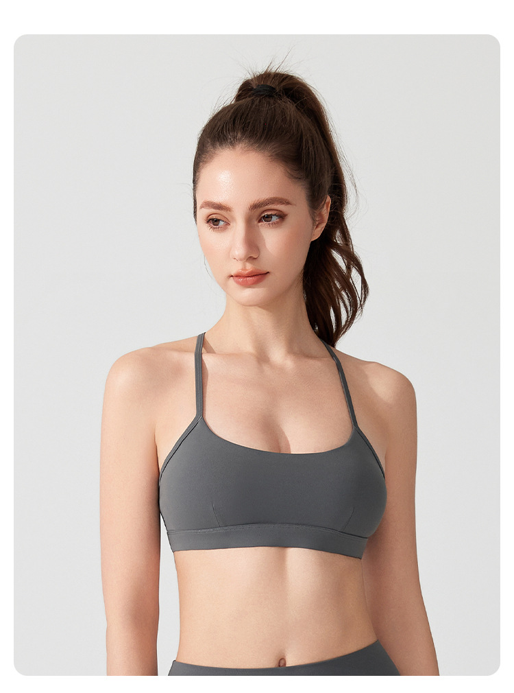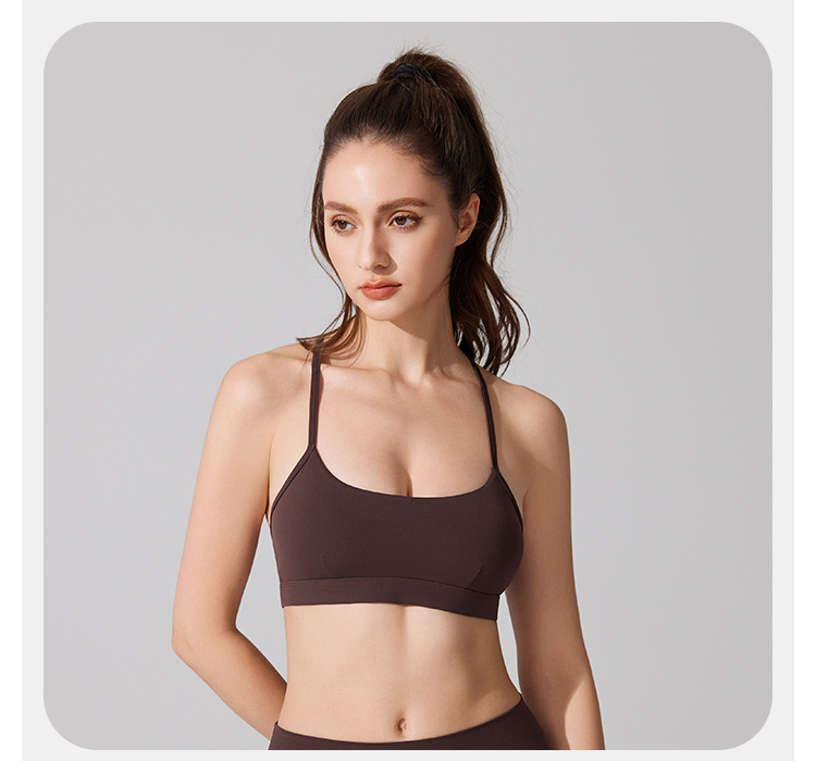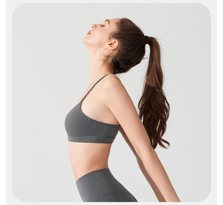 2022 new triangle beauty back fitness sports bra thin shoulder straps gathered nude yoga bra