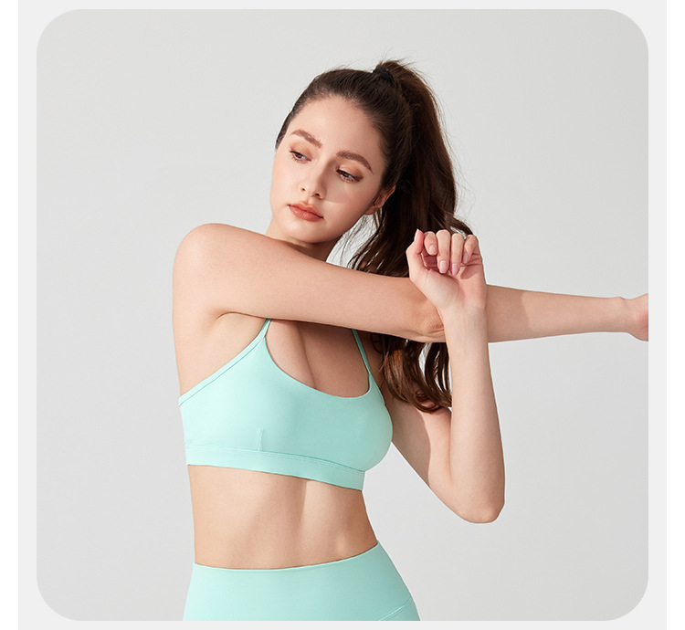 Regular price $8.90 USDRegular priceunit price / unit price$33.86 USDSale price $8.90 USD2022 new triangle beauty back fitness sports bra thin shoulder straps gathered nude yoga bra