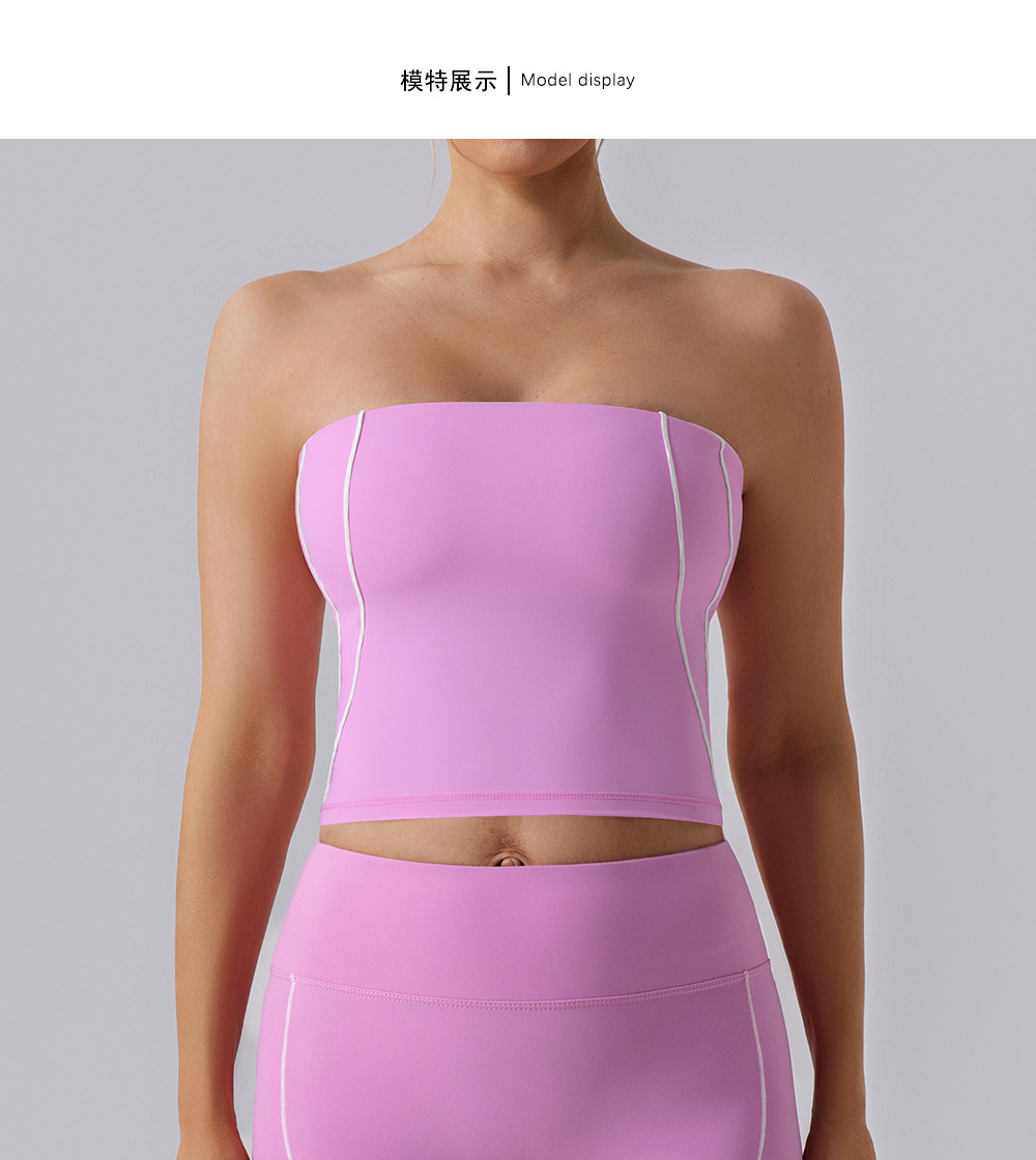 12/2024 Women's sports bra nude double-sided brushed bra with chest pads contrasting lines slim yoga chest wrap