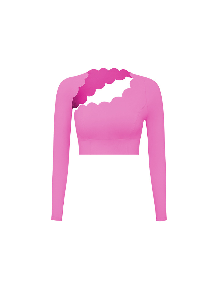 2024 Diagonal shoulder hollowed out irregular yoga wear long sleeve high elastic thin breathable quick dry Pilates training fitness top